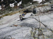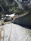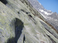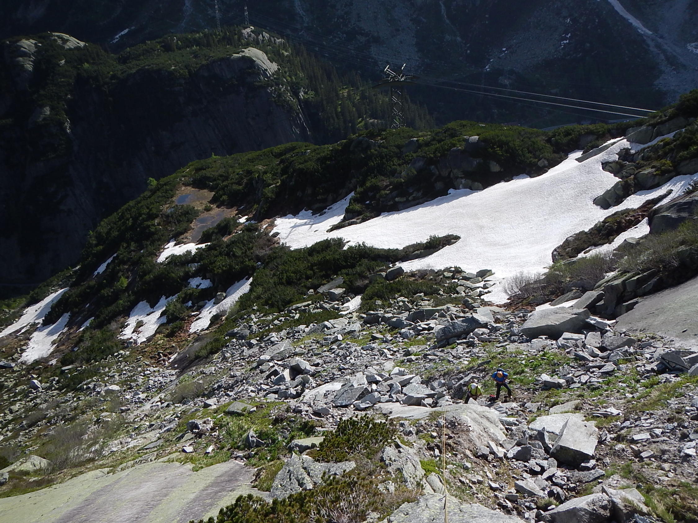 Unterhalb des Einstiegs relativ frische wirkendes Geröllfeld (evtl. Ausbruch, betrifft aber nicht die Tour), dort viel loses Geröll.