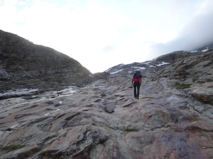 Für das Schneefeld im Abstieg Steigeisen empfehlenswert.