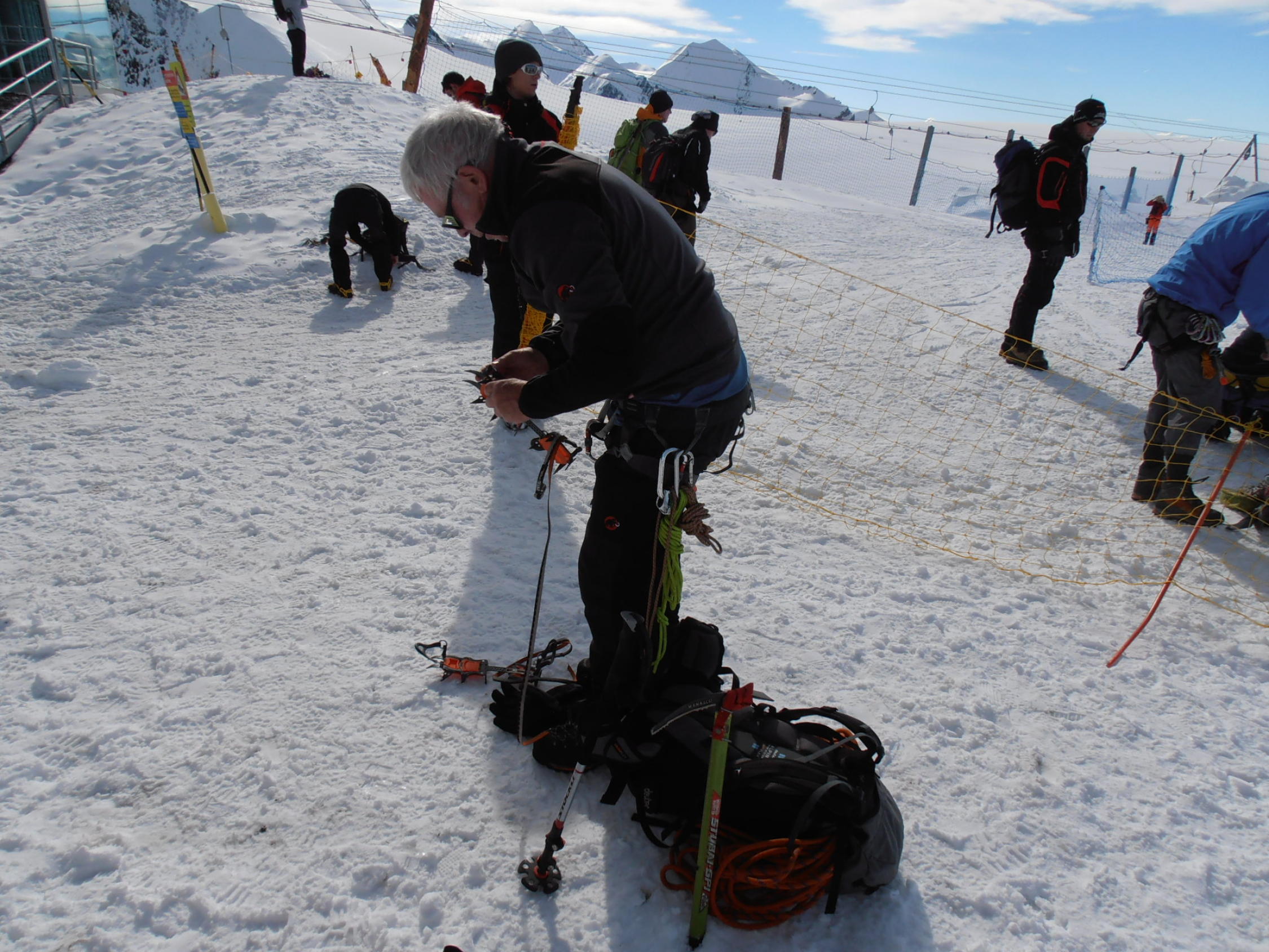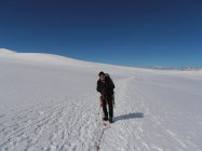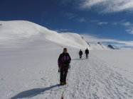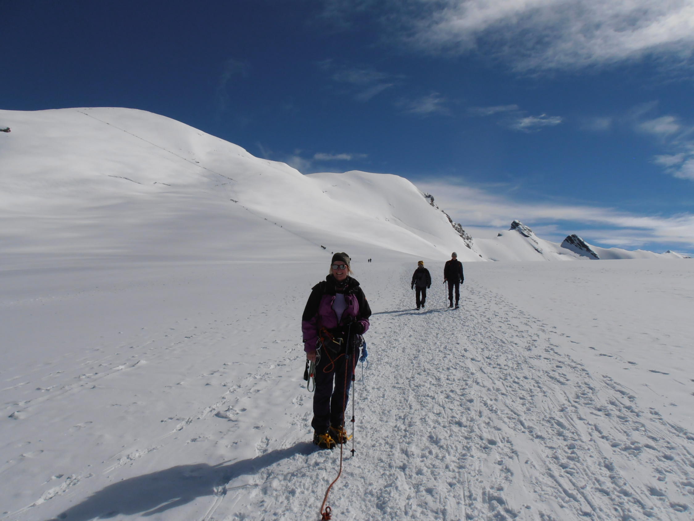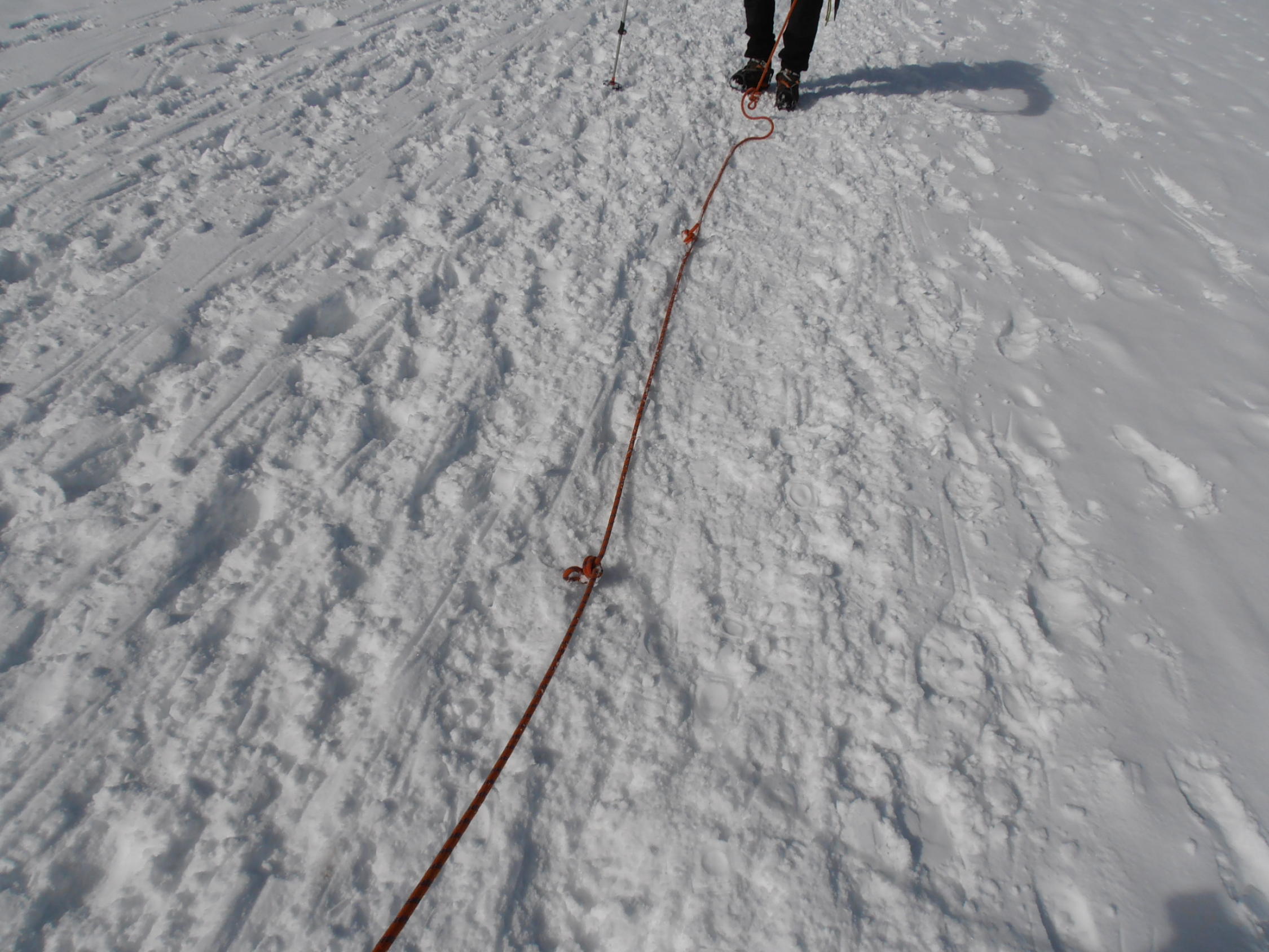 Dank der vielen Berggänger und Berggängerinnen war eine gute Spur, auch über den Gletscher, angelegt. Spur im Aufstieg hart, im Abstieg eher sulzig.