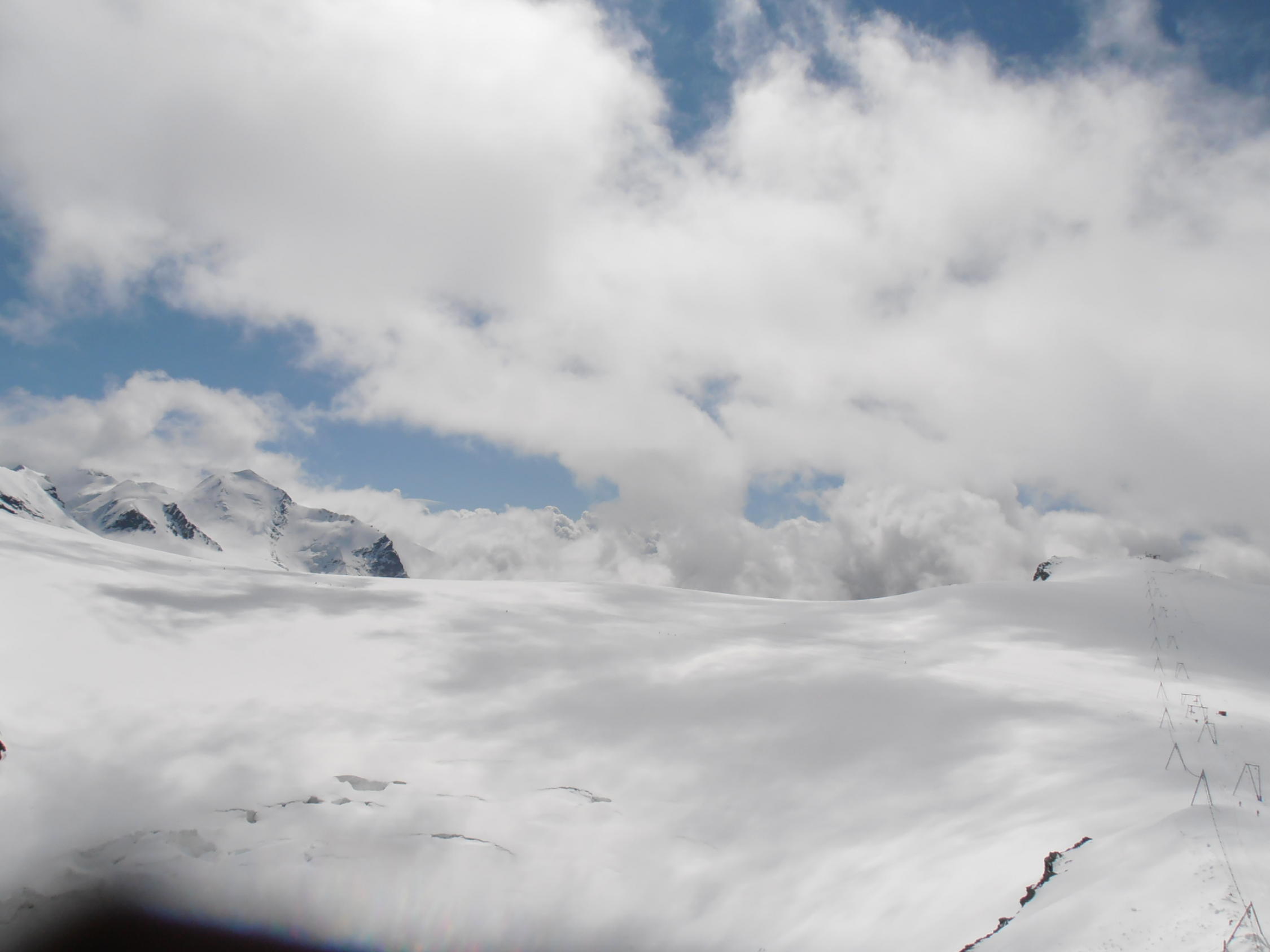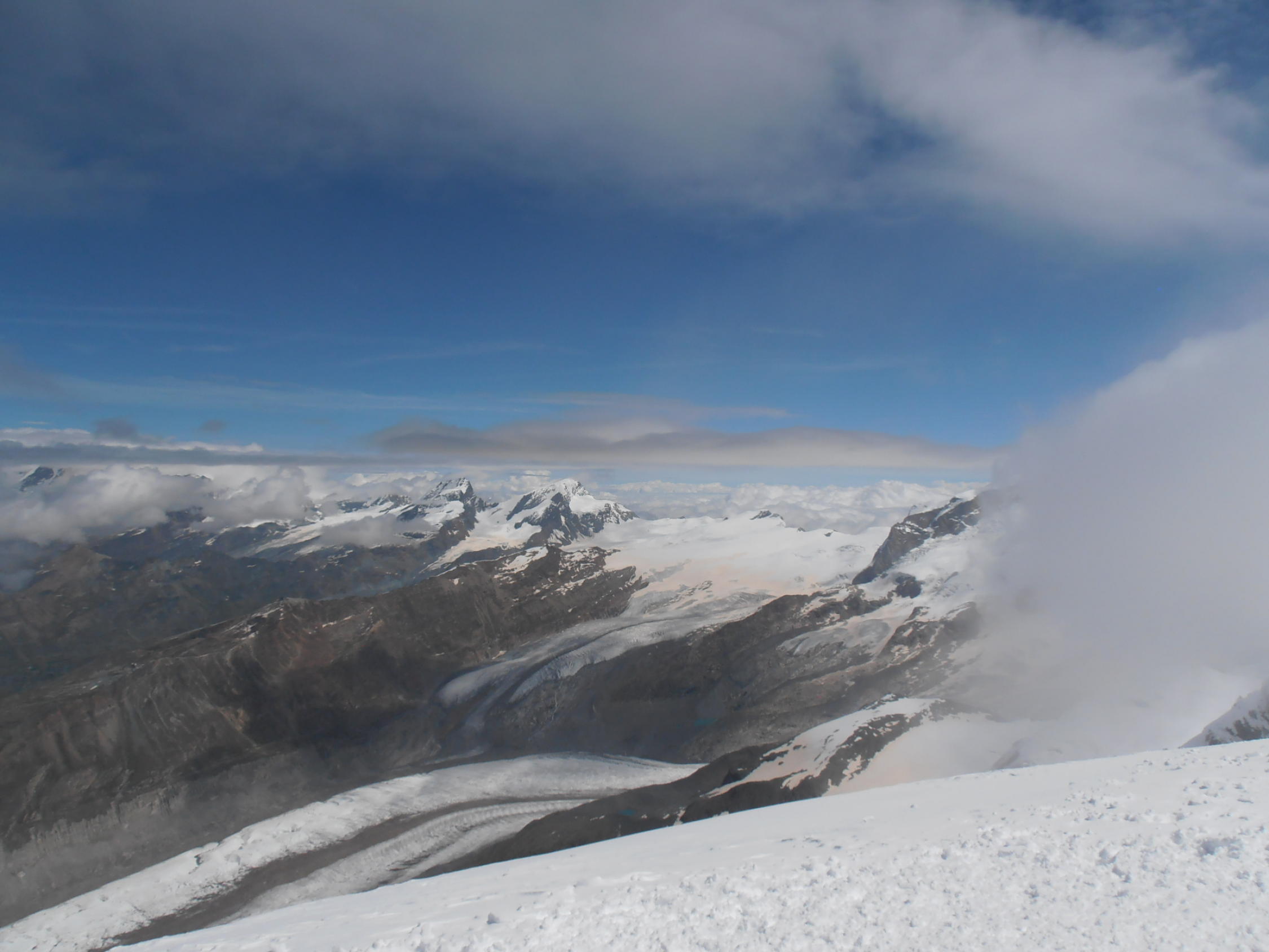 Nach einer Woche Höhentraining und Besprechung der Spaltenbergung haben wir zu zweit die Tour in einem Schönwetterloch vom Klein Matterhorn aus unter die Füsse genommen.