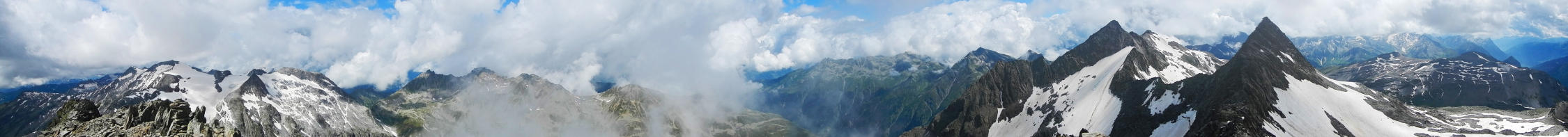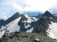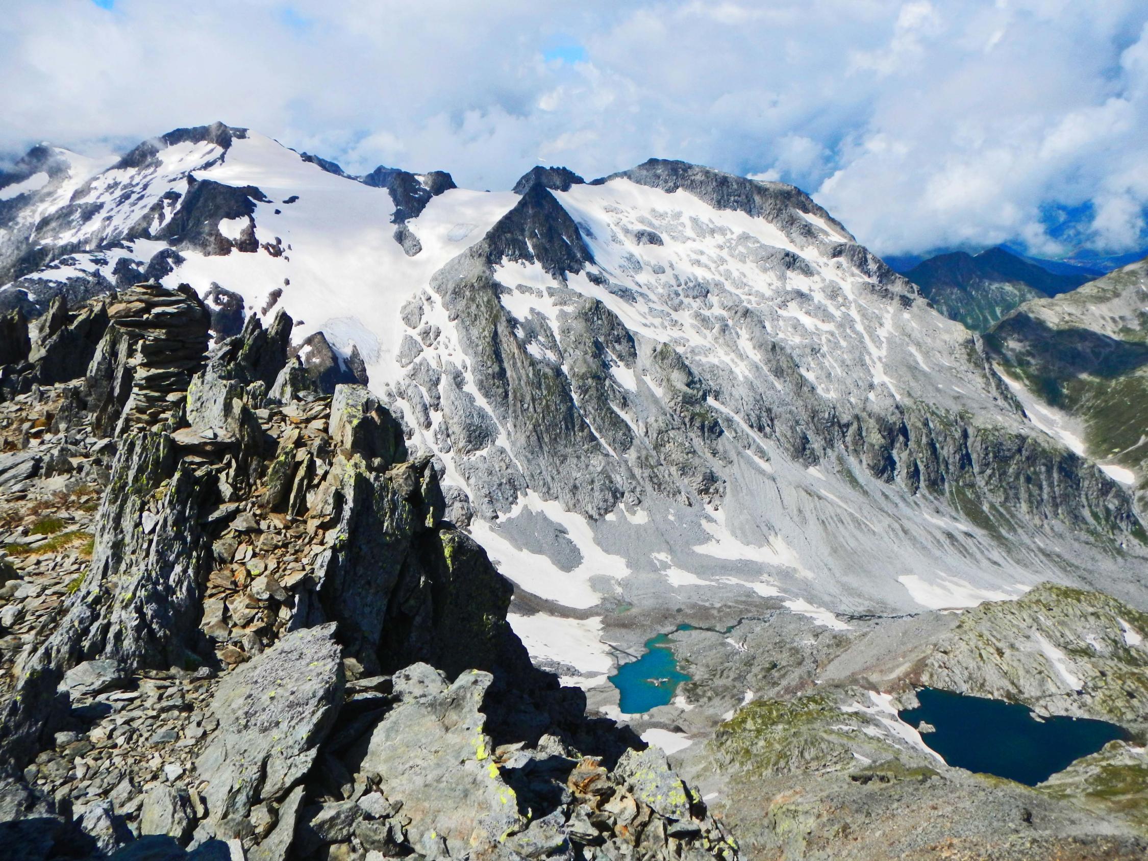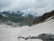 Gletscher nicht ausgeapert, gut mit Bergschuhen begehbar. Schneefelder im Gebiet Valdraus gut begehbar.