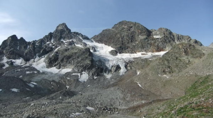 Für die Überquerung der Gletscherhänge sind Sommersteigeisen von Vorteil.