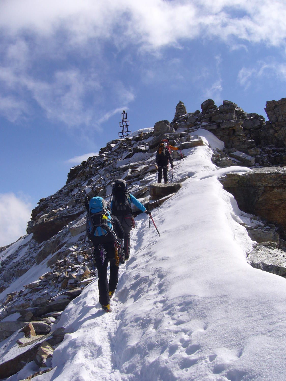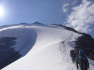 Der Gipfel wird wohl auch weiterhin nur mit der Durchqquerung des Firnfeldes erreichbar sein. Steigeisen und Pickel sind zu empfehlen. Wir haben einige ohne HT-Ausrüstung umdrehen sehen.