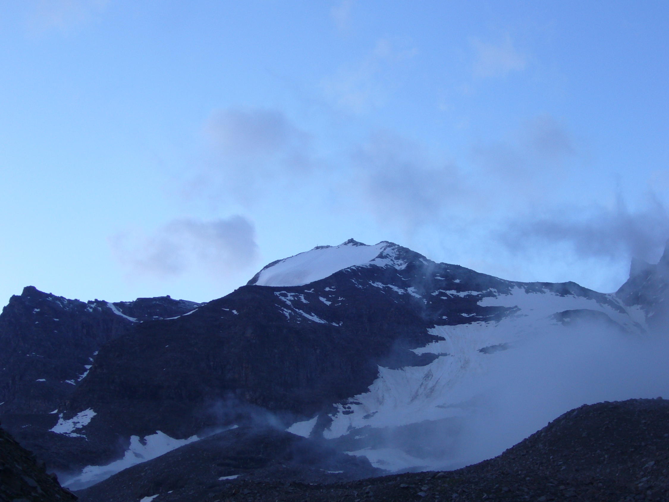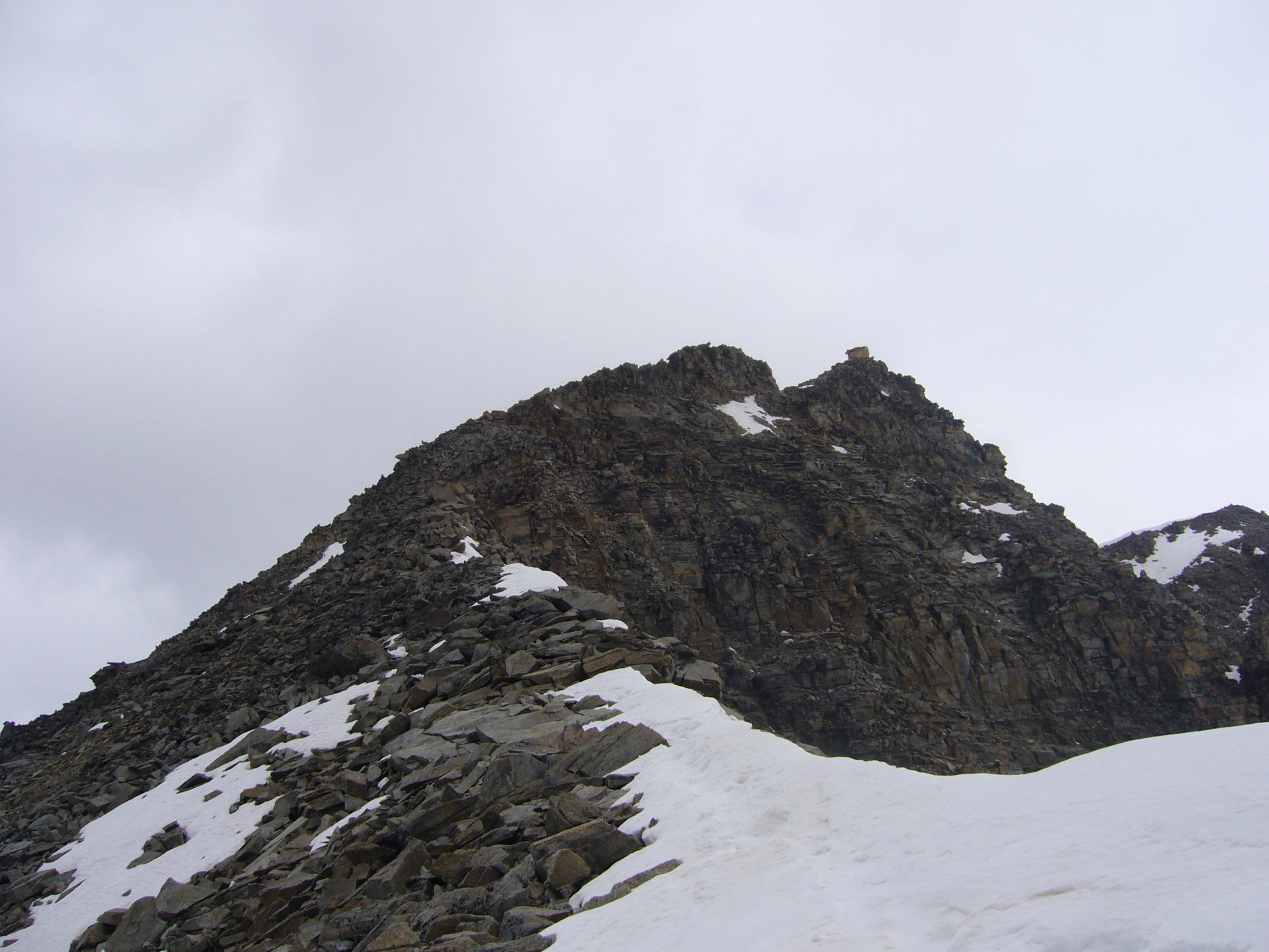 Es hat dieses Jahr recht viel Schnee. Man gelangt nicht ohne Firnbegehung zum Gipfel. Am Besten das Gipfelfirnfeld queren. Es sit nicht ganz flach und hat sicherlich knapp 30 Grad. Für normale Wanderer ohne HT-Ausrüstung nicht zu empfehlen.