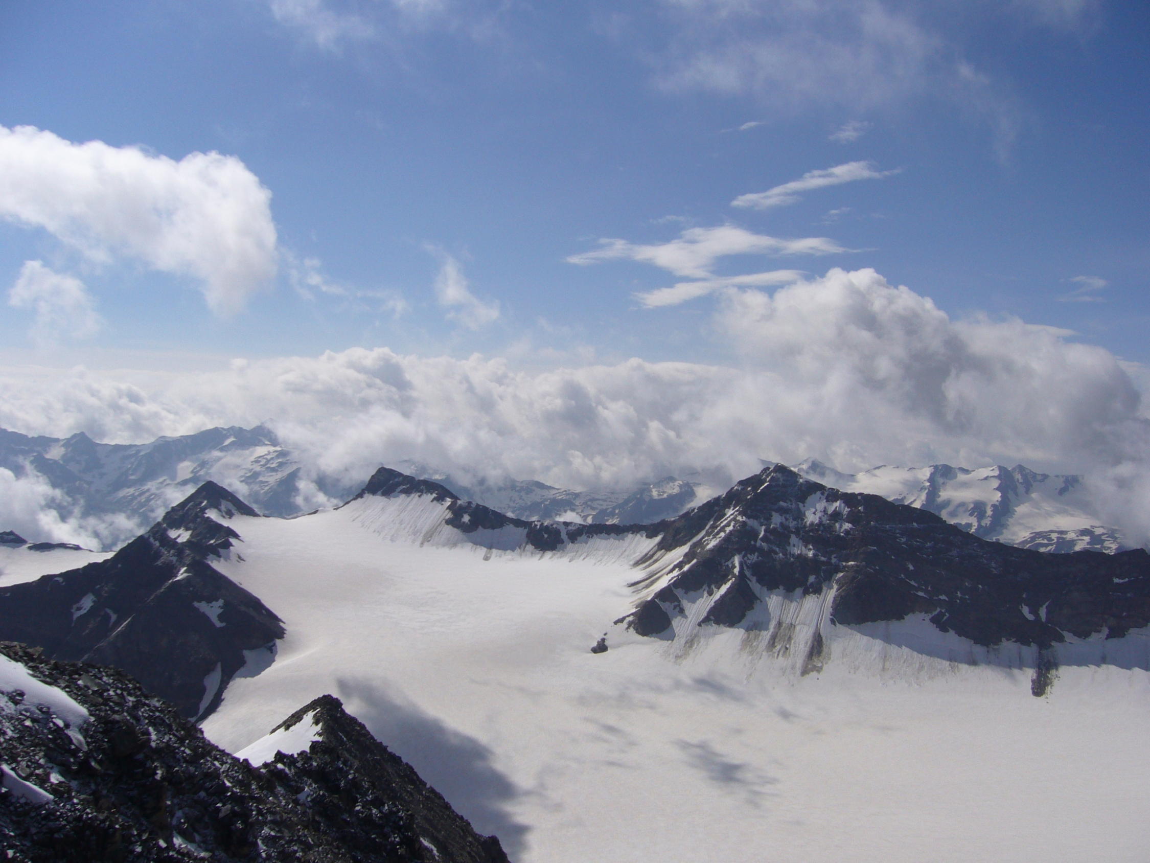Abstieg überdie Angelusschachte - Rosimferner hinab nach Sulden. Die Vertainspitze haben wir wegen Schlechtwettereinbruch ausgelassen.