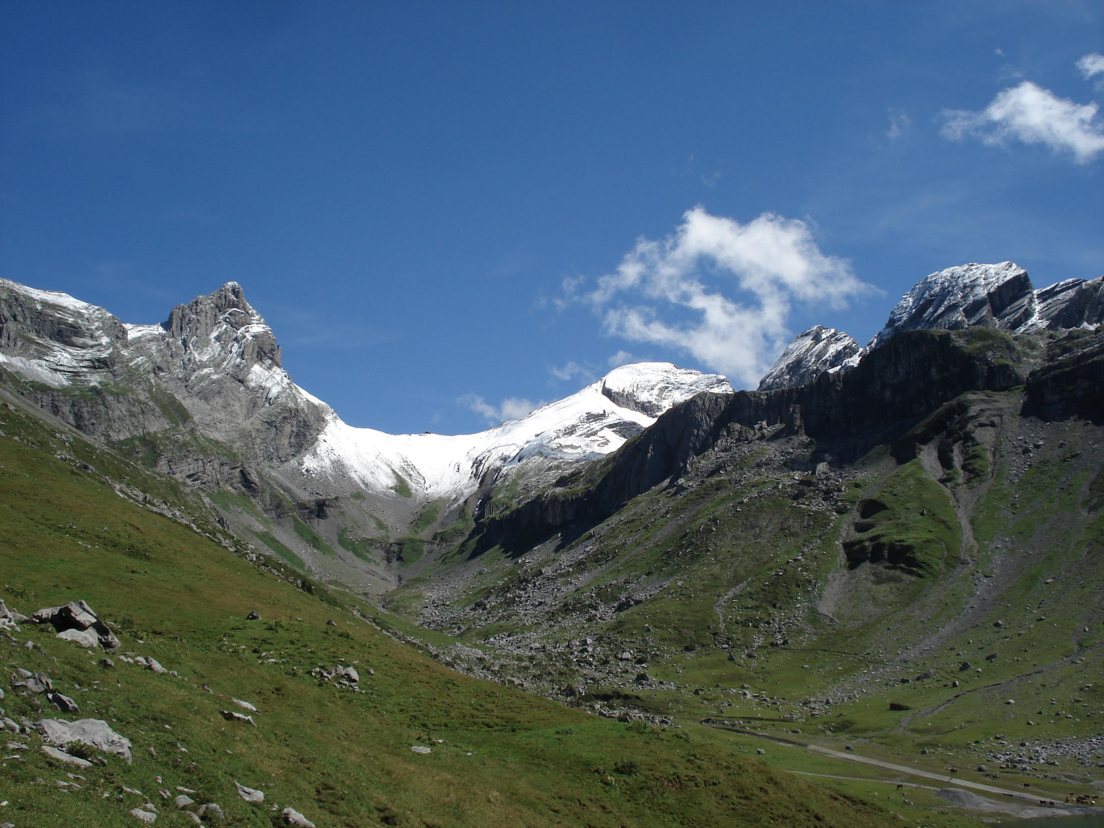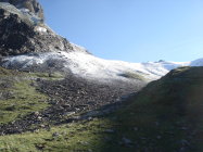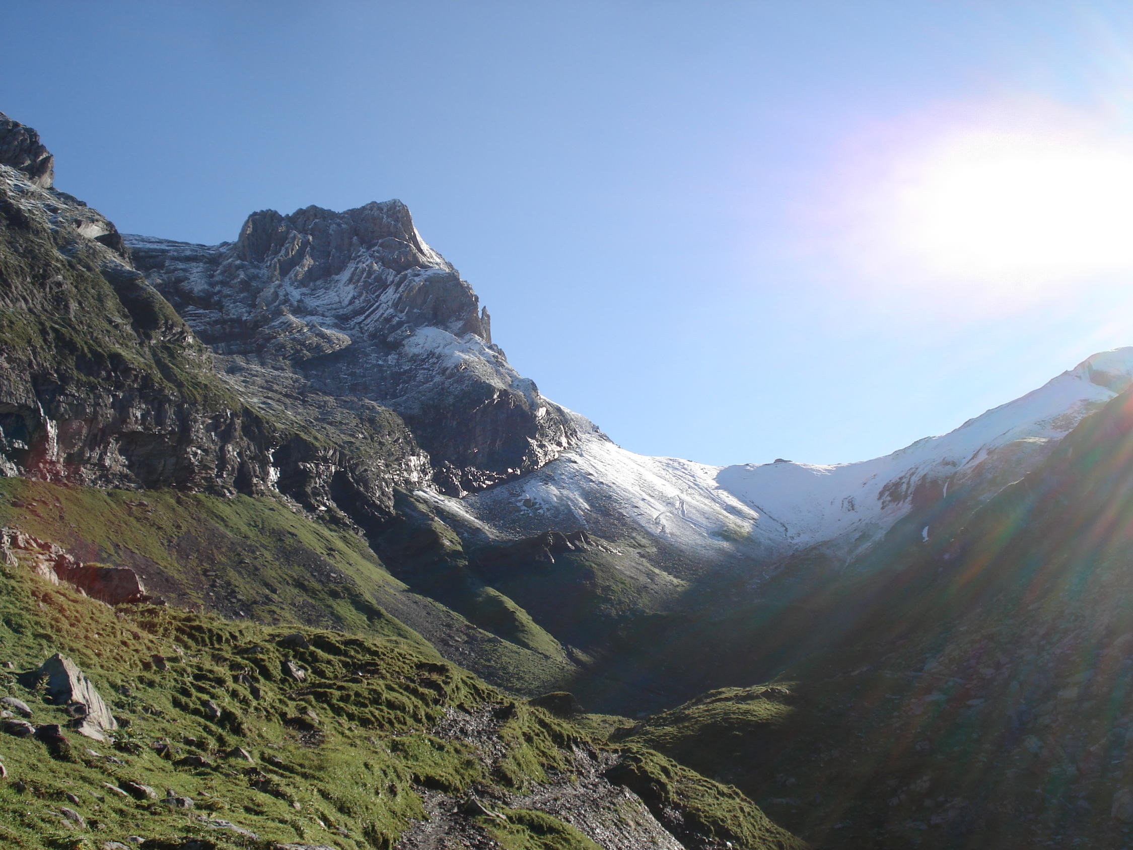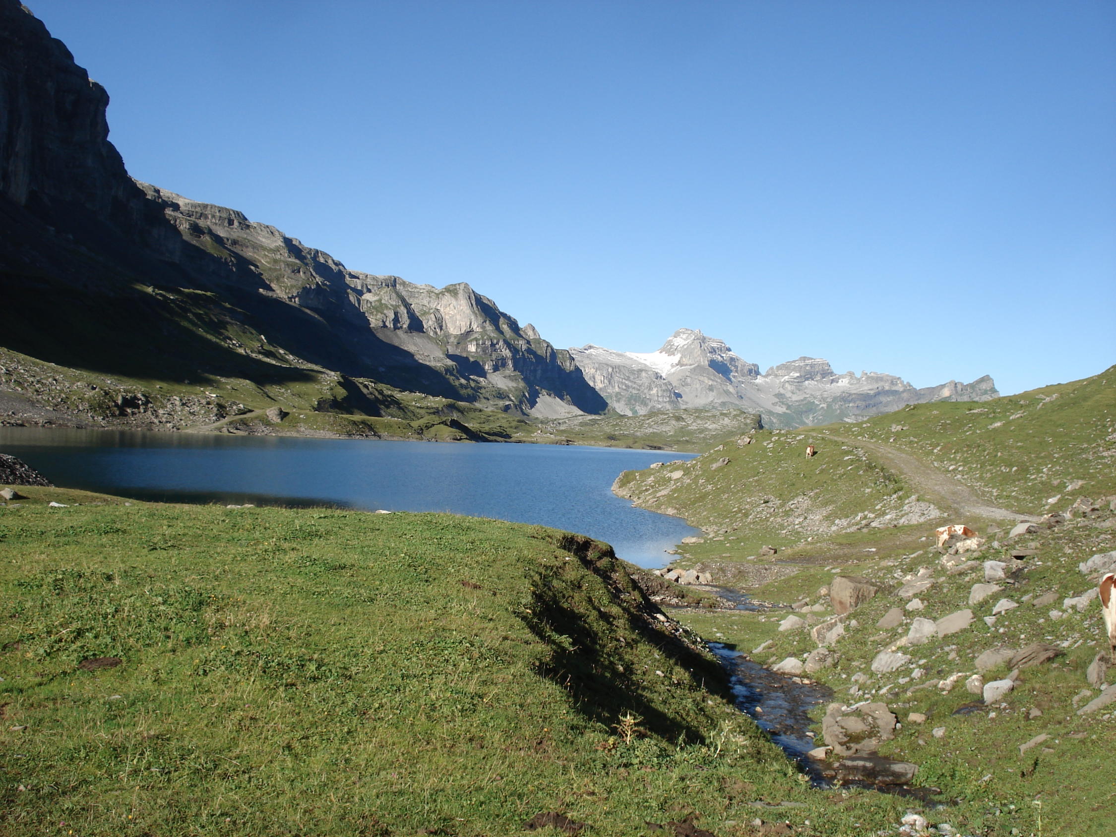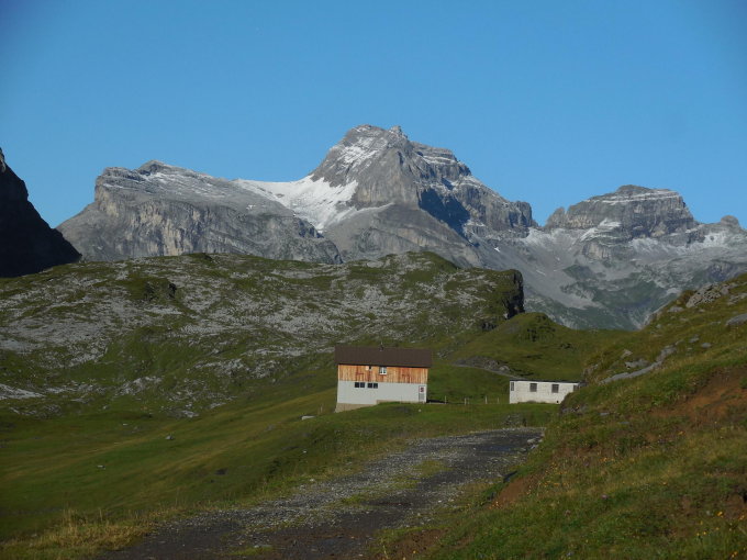 Start am 8 Uhr bei der Bergstation Glattalp, vorbei bei der kalten Glattalp in Richtung See.
