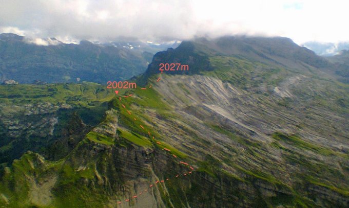 Von ober Zindlen lässt sich die Grathöhe auch weiter links über den Nordgrat gewinnen, wie im alten Alpinführer Glarnerland beschrieben; leicht ausgesetzt, aber keine alpinistischen Schwierigkeiten; auf dem oben beschriebenen alten Weg ist es aber eindeutig bequemer (vor allem im Abstieg).
