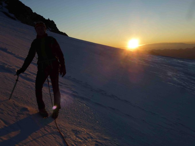 Aktuell beste Verhaeltnisse! Im Couloir noch (harter) Firn, Abstieg ueber den Violette-Gletscher perfekt! Wenn nicht jetzt noch, wann dann? Dazu aktuell bestes Wetter...