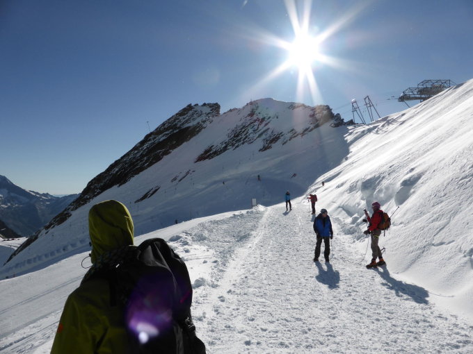 Super Bedingungen. Gute Spur, im Aufstieg wie im Abstieg. Felsen zum Feechopf sind schneefrei. Felsriegel unterhalb der Eisnase noch sehr gut mit Firn überdeckt. Eisnase selber auch sehr gut zu gehen(kein Blankeis). Etwas heikel sind verdeckte Spalten im Abstieg.