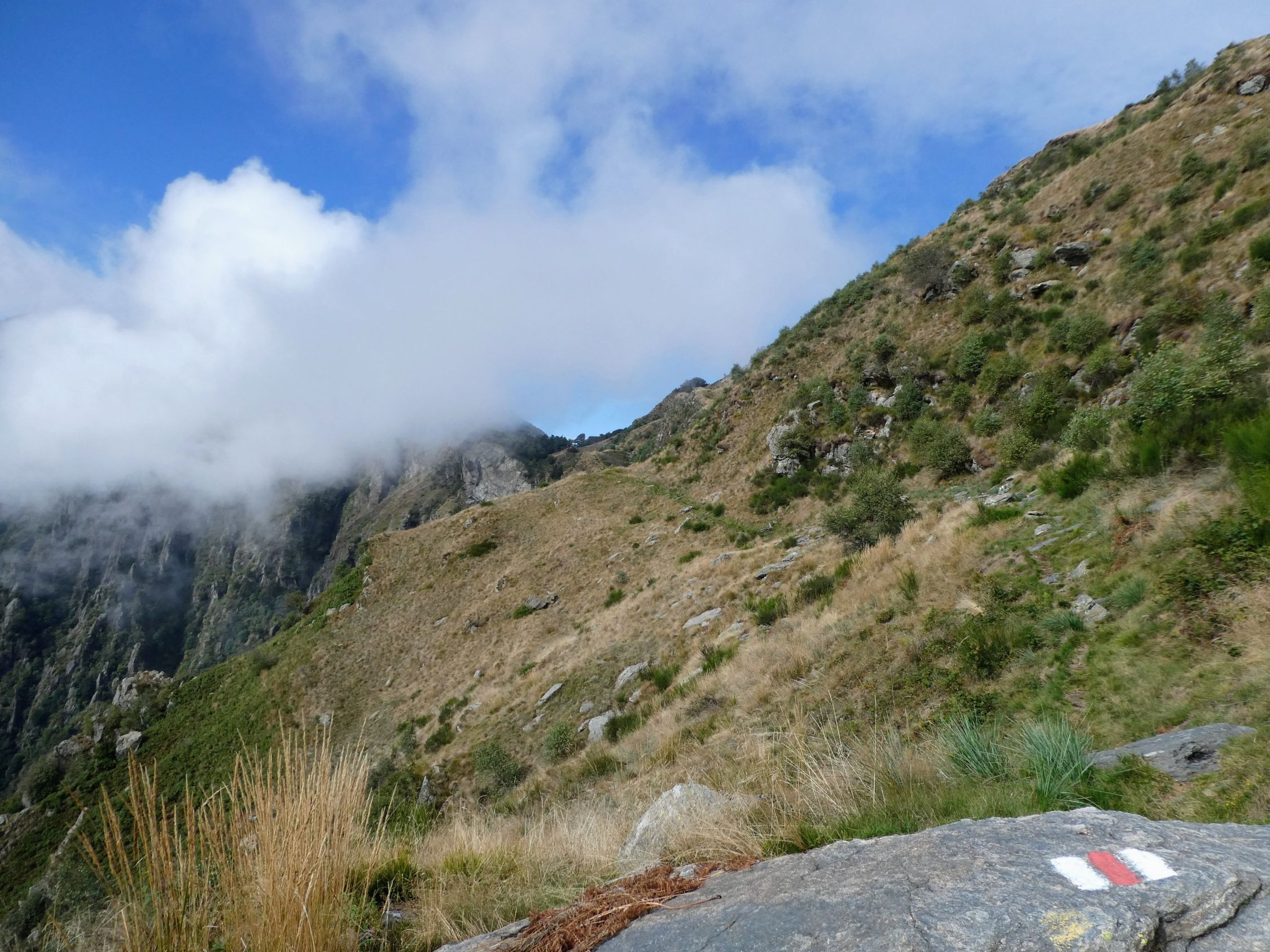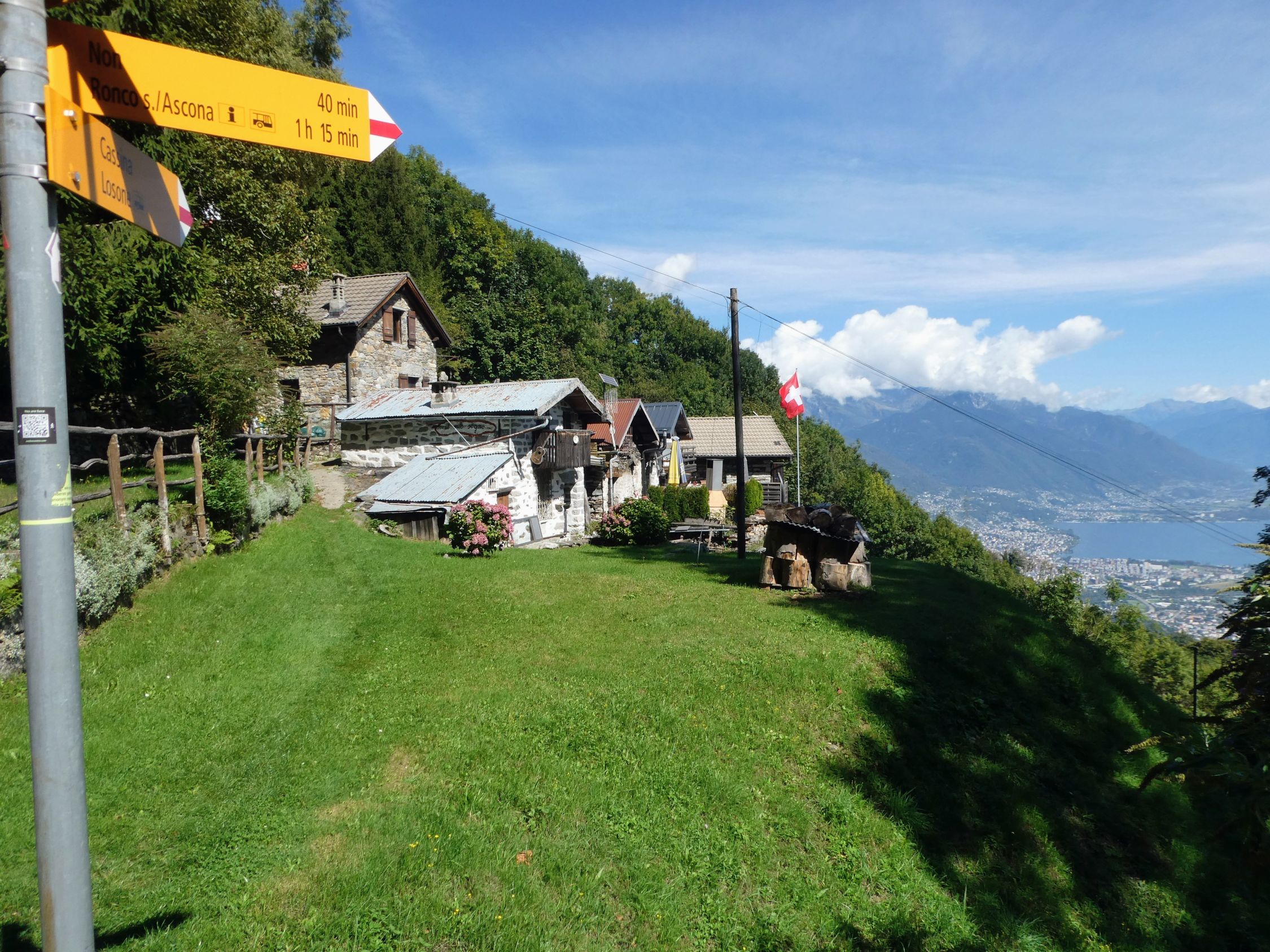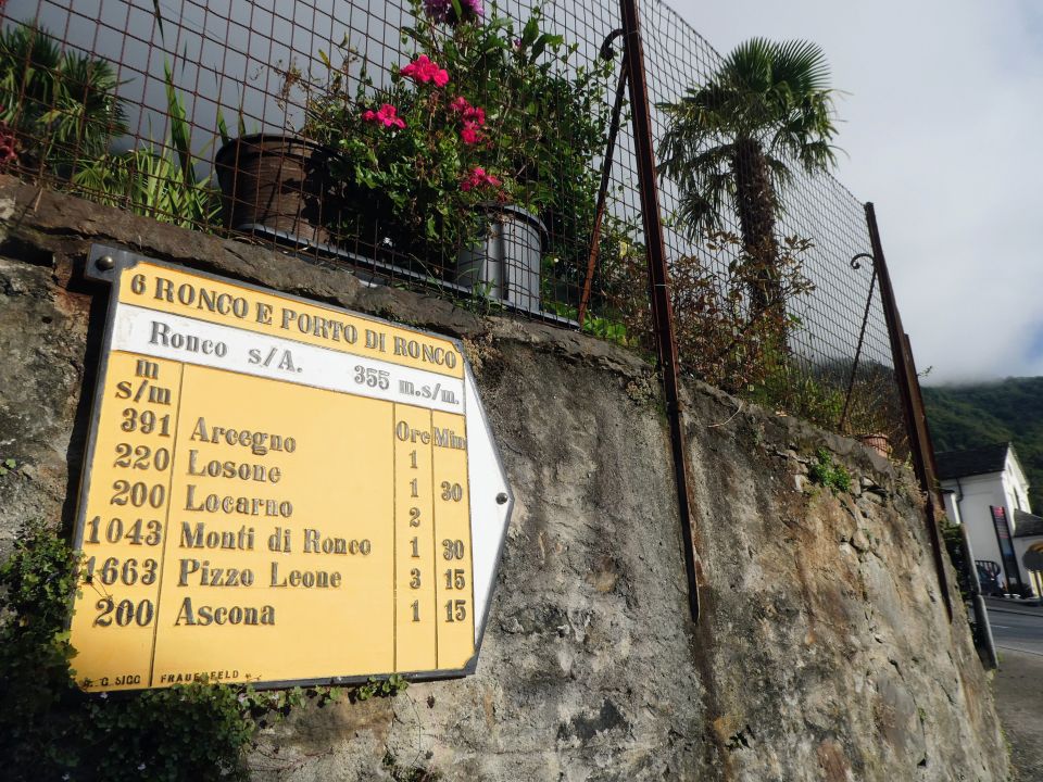 Tourstart in Ronco um ca.8.45 bei 16° und noch vielen Restwolken vom nächtlichen Regen. Auf dieser Tour wurde es aber bald sonnig und warm, während höhere Gipfel teils noch länger in Wolken waren.