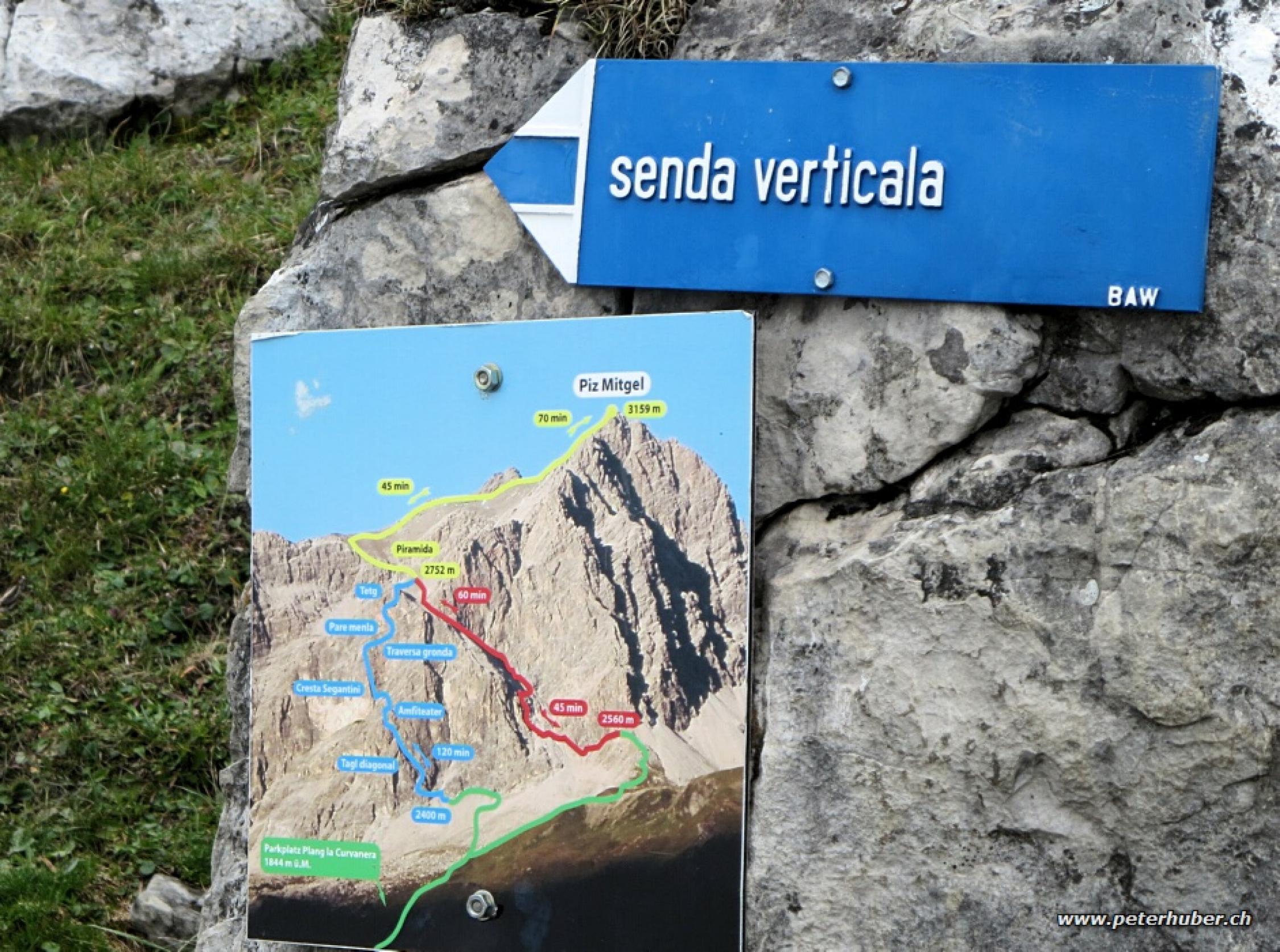 Fahrstrasse bis auf die Alp wurde neu erweitert. Einige Sicherungsstifte sind lose, in der Senda diagonala auch heraus gerissene Stifte. Beim derzeitigen Ausmass noch kein Problem, sollte jedoch einmal nachgepflegt werden.