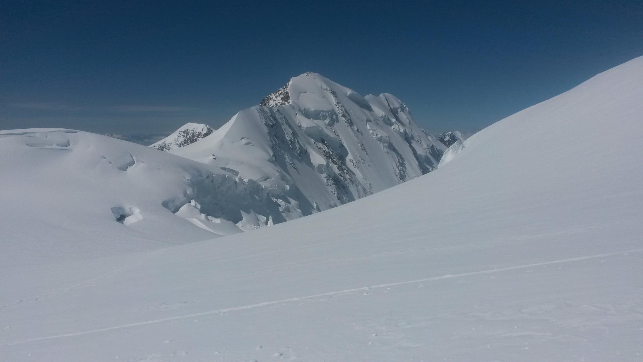 Wie schon am Liskamm sehr guter Trittschnee. Die Spur ist teilweise nur knapp 2 Schuh breit. Die Grattürme und die Platte waren gut zu klettern. Im Grenzsattel hat es besonders stark gepfiffen.