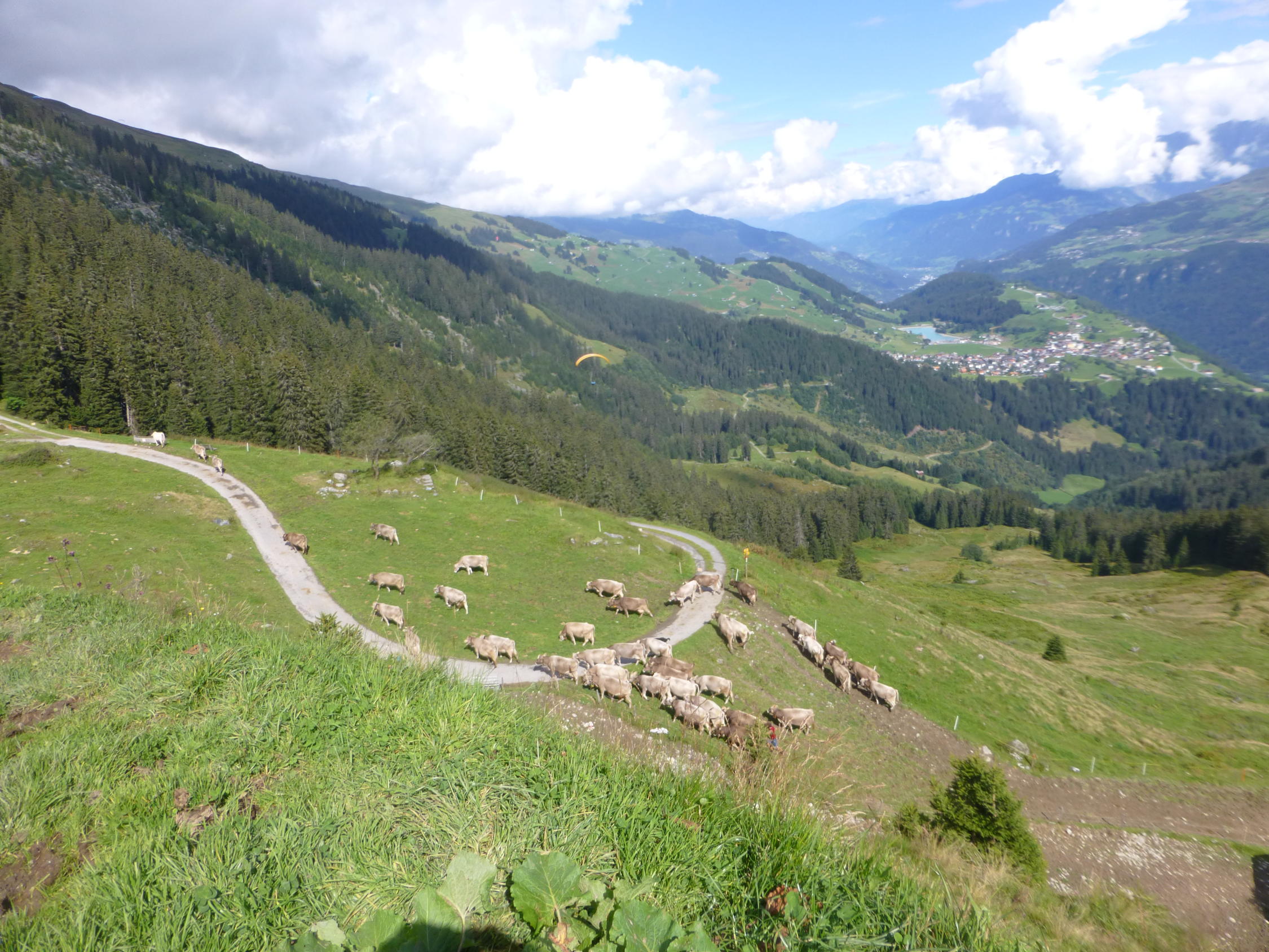 Beste Verhältnisse. Kühe schon nicht mehr auf der obersten Weide.