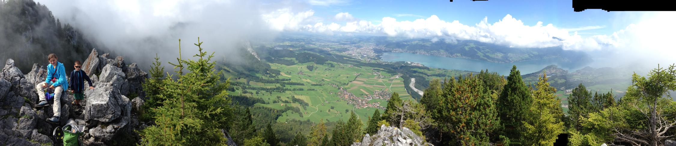 Am Morgen noch etwas feucht und nass. Im Tagesverlauf zunehmend schöner. Auf dem Gipfel Nebelschwaden, die die wunderschöne Sicht auf den Thunersee etwas beeinträchtigt haben. Die nassen Wurzeln im Wald waren rutschig. Daher waren wir froh um die Gstältli und die Selbstsicherung am Drahtseil.