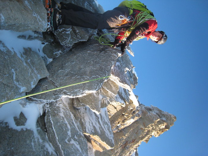 Die zweite Abseilstelle im Couloir war für uns 25m. Auch bei einer anderen hatten wir noch 30cm Seil in der Hand. Wie man ein 40m Seil für die Tour empfehlen kann ist mir rätselhaft. Sowohl Silbernagel wie Camp-to-Camp sprechen von max. 20m Abseillängen. Was läuft hier falsch? Ist ein Stange noch zugeschneit?