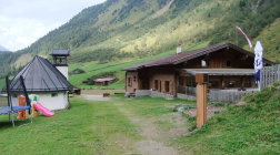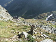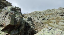 Schöner Steig mit ständigem Blick auf die Hüttenterrasse (und umgekehrt), aber nur kurz.