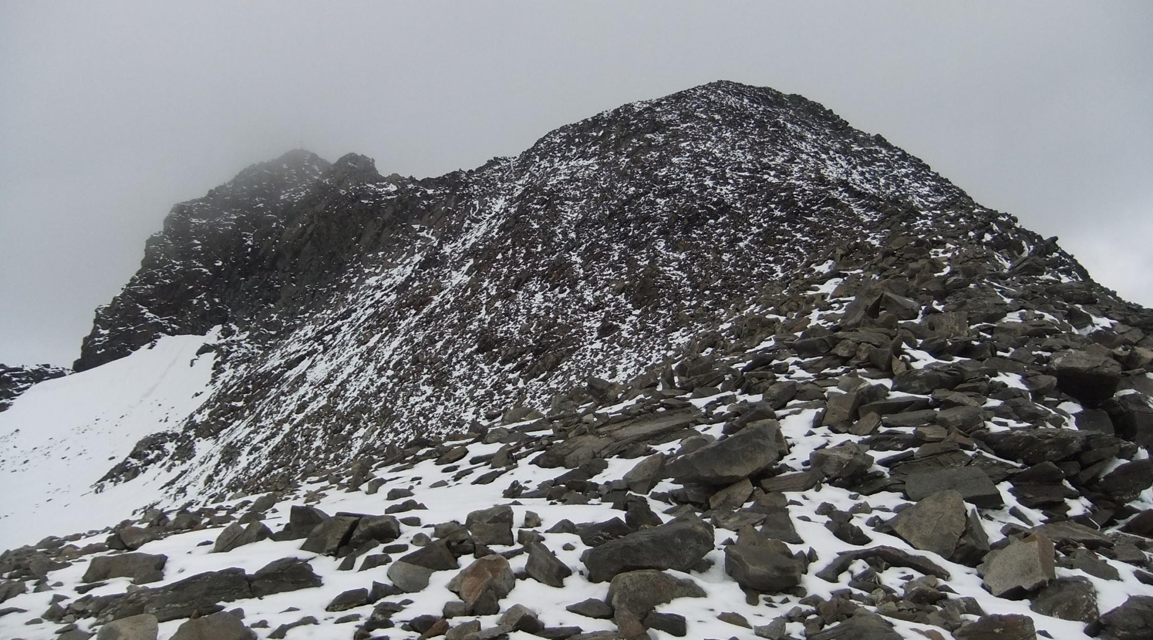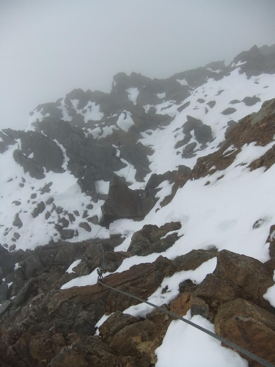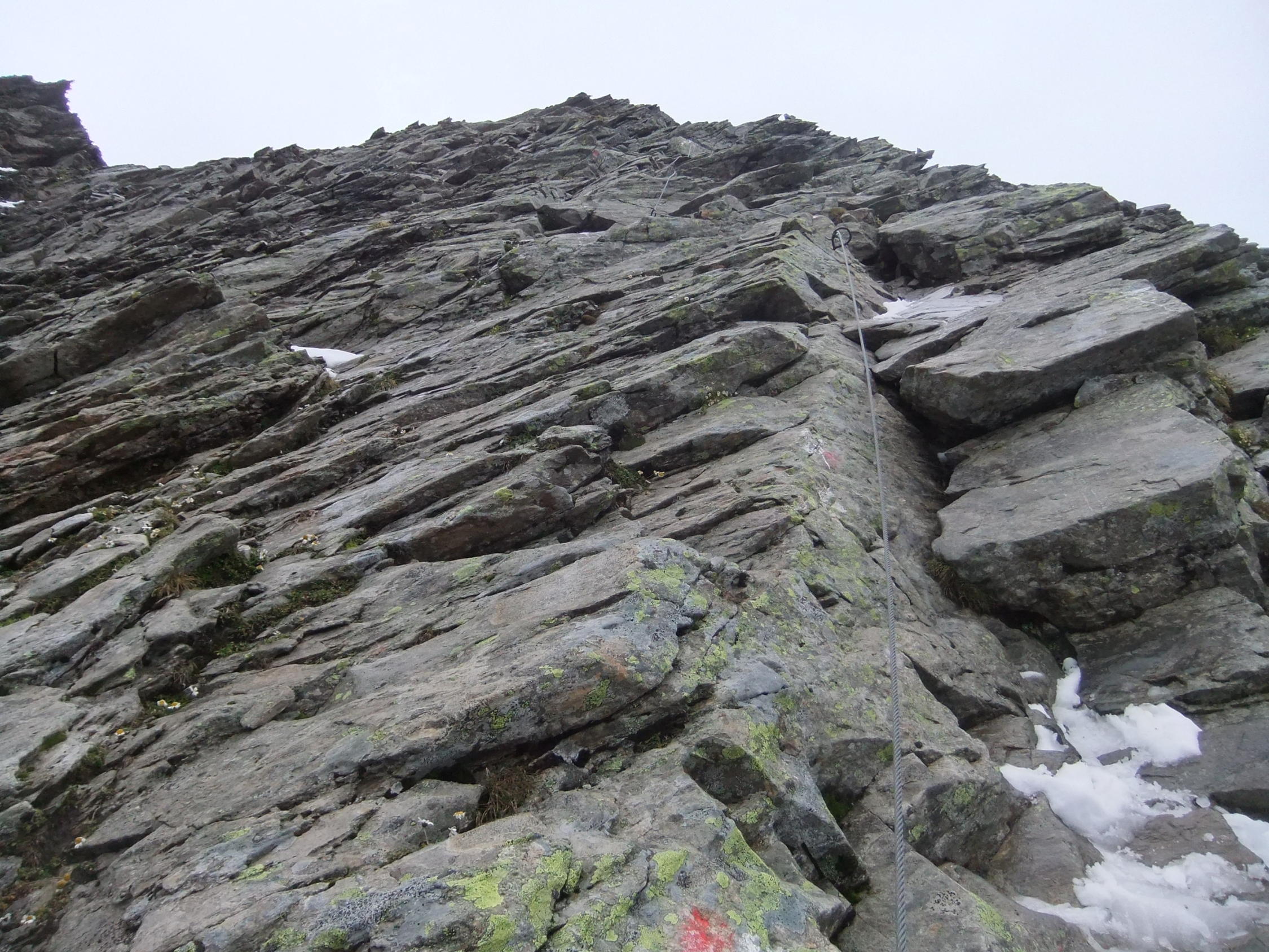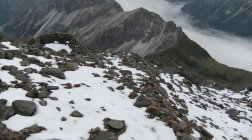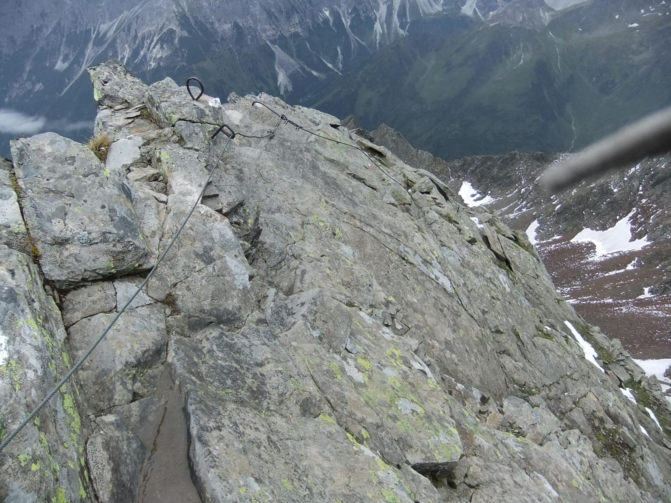 Tourenbeginn von der Innsbrucker Hütte um 06:30 Uhr. Ab ca. 2800 hm Neuschnee der Vortage, im Gipfelbereich kniehoch, jedoch wegen der nicht kalten Temperaturen nirgendwo vereist, so daß die Sommersteigeisen im Rucksack blieben. Bei Vereisung nimmt die Schwierigkeit erheblich zu.
