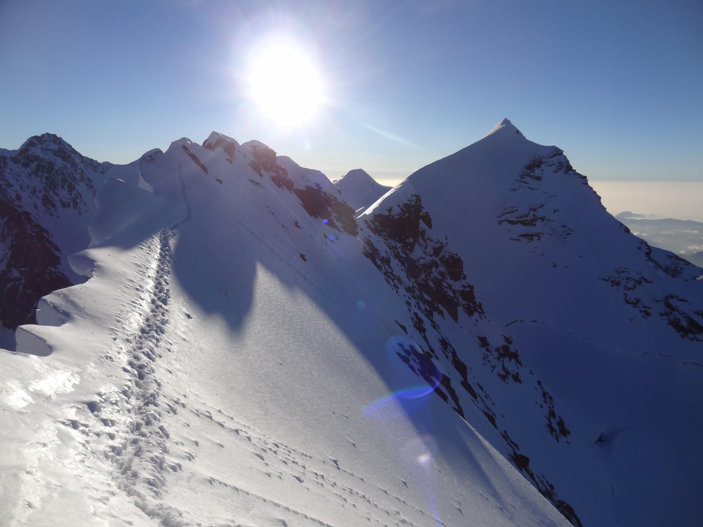 Die Liskammtraversierung vom Kleinen Matterhorn aus weist momentan sehr gute Verhältnisse auf. Es kommt nirgends Blankeis zum Vorschein, weder am Castor noch am Liskamm und zudem ist die gesamte Route gut eingespurt.
