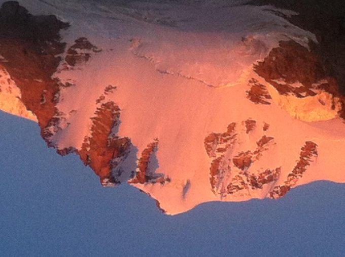 Die Nordwestwand kann zurzeit dank ihrer Exposition relativ spät erstiegen werden. Wir waren am Bergschrund um 8 Uhr.