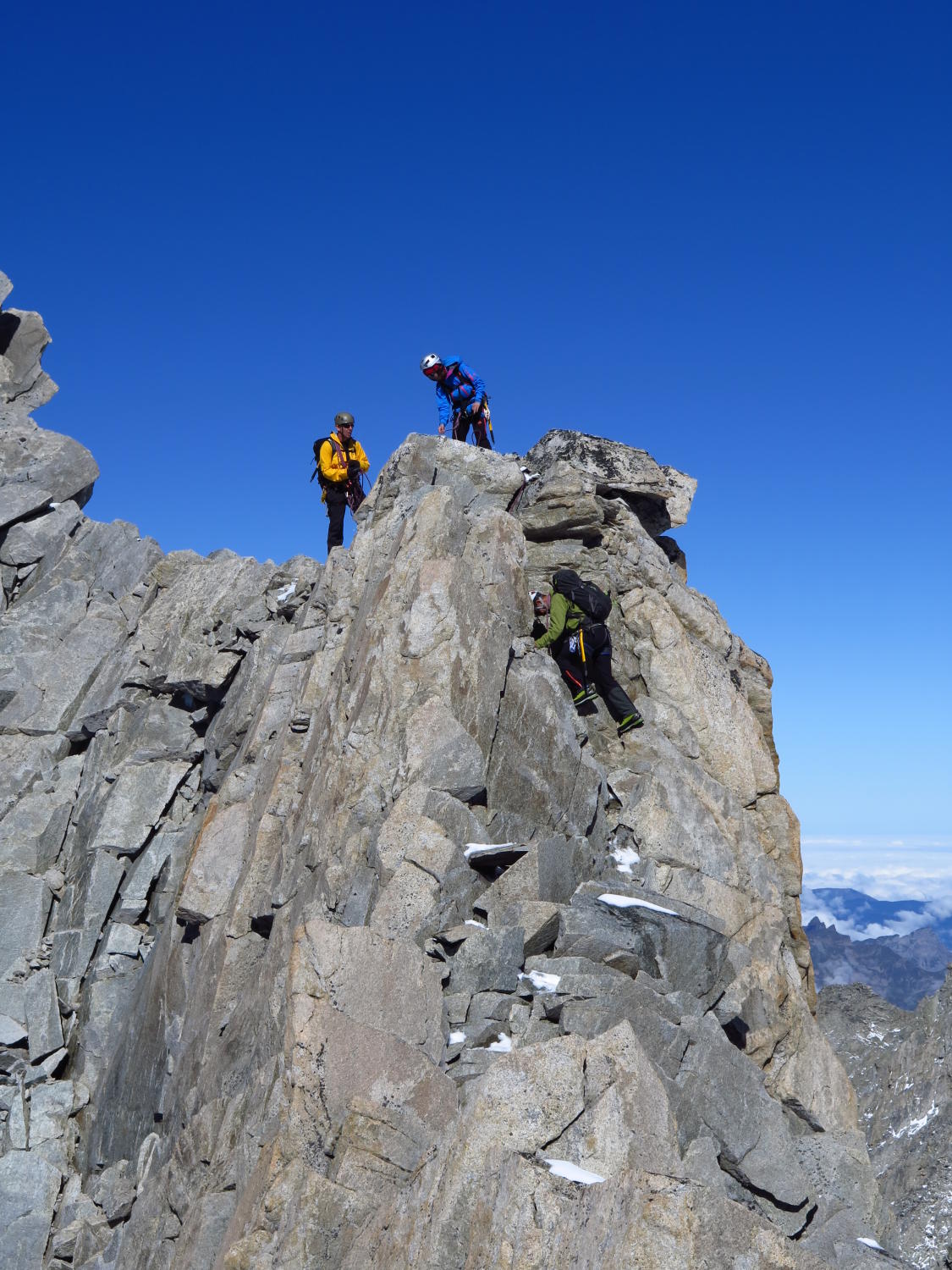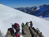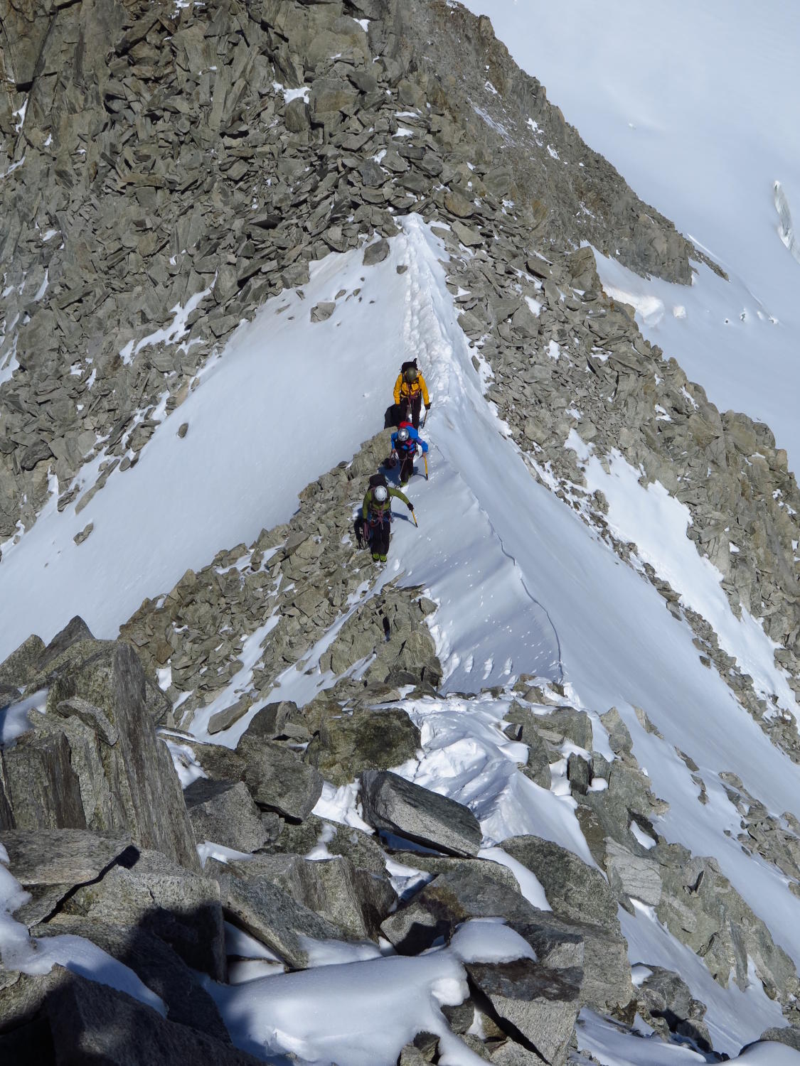 Einfacher Übergang auf den Diechtergletscher, guter Trittschnee bis zur Diechterlimi. Am Grat selber wegen Neuschnee und Reif etwas rutschig, der Fels ist an der Gratschneide und in den schwierigeren Stellen einigermassen fest, in den Flanken aber sehr brüchig. Der Abstieg über den Rhonegletscher geht in 2.5 Std. problemlos.Bei der Scheidflüe am besten beim "t" vom gletscher in westlicher Richtung zum Sumpf absteigen.