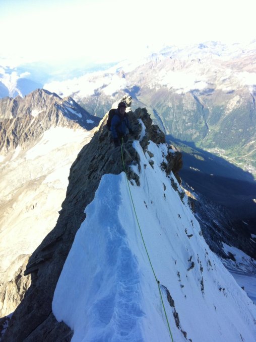Der Fels ist bis Mitte Westgrat trocken. Ab Frühstücksplatz muss mit Steigeisen weitergeklettert werden. Gut verfestigter Trittschnee. Insgesamt sehr gute Verhältnisse.