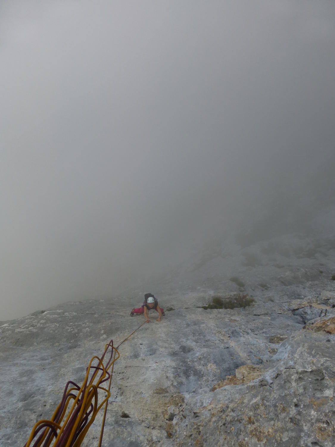Die Verschneidung in der 2. SL was noch ein bisschen feucht aber kletterbar. Sonst alles trocken. Gute Bedingungen.