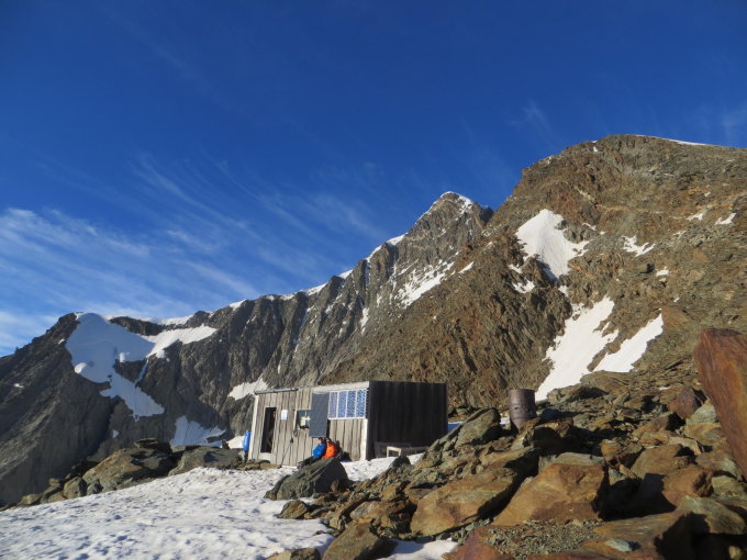Letzter bewirteter Abend der Saison auf der Durierhütte: zu viert + Hüttenwartin in 20er-Biwak = Luxus (merci Manon!). Zustieg bis Durier von Bellevue aus am Vortag auch schon eine rechte Wanderung (1800hm...). Merci + bravo Paul für die tolle Überquerung mit Mont-Blancgipfel zum Dessert! Bei den anschliessenden 3000hm Abstieg war eine gute Portion Humor nötig, da sonst eeeeeehwig lange...:-)