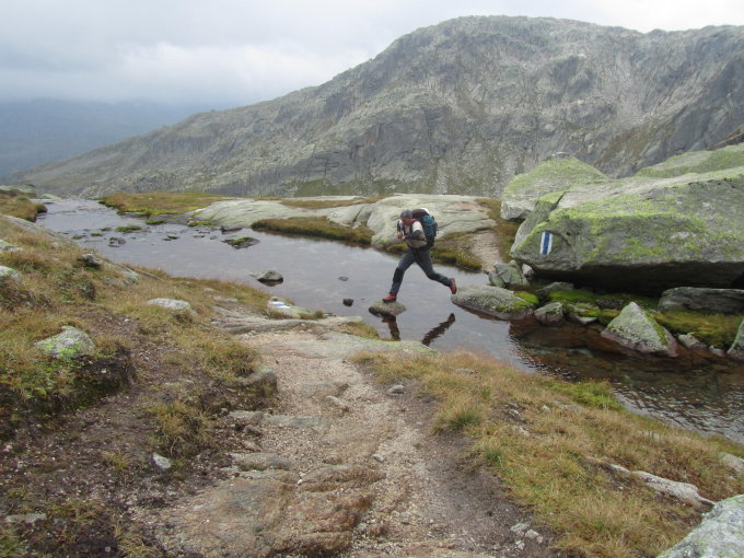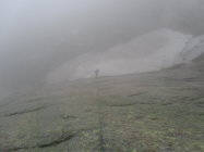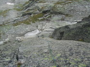 Am Einstieg ein pickelhartes, unangenehmes Schneefeld.