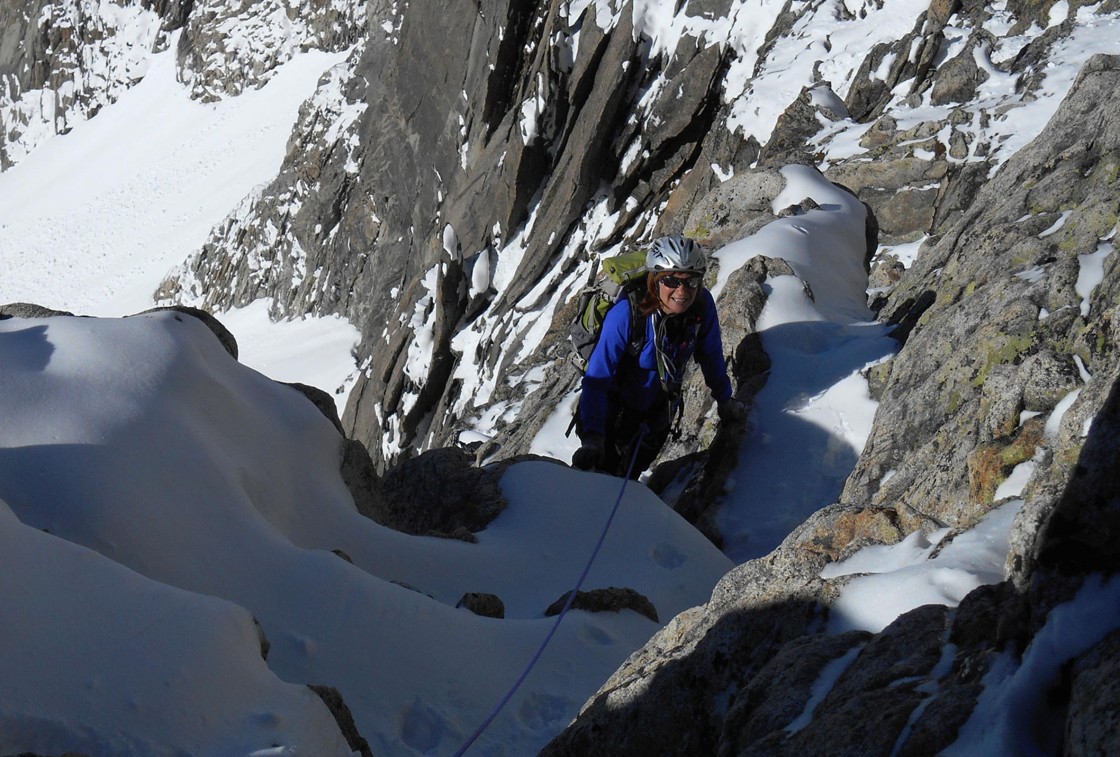 Wir legten nach dem Schneefall die erste Spur über den SE-Sporn auf den Galenstock und waren an diesem traumhaften Herbsttag allein an diesem wunderschönen Berg! Da nimmt man etwas Schnee beim Klettern gerne in Kauf!