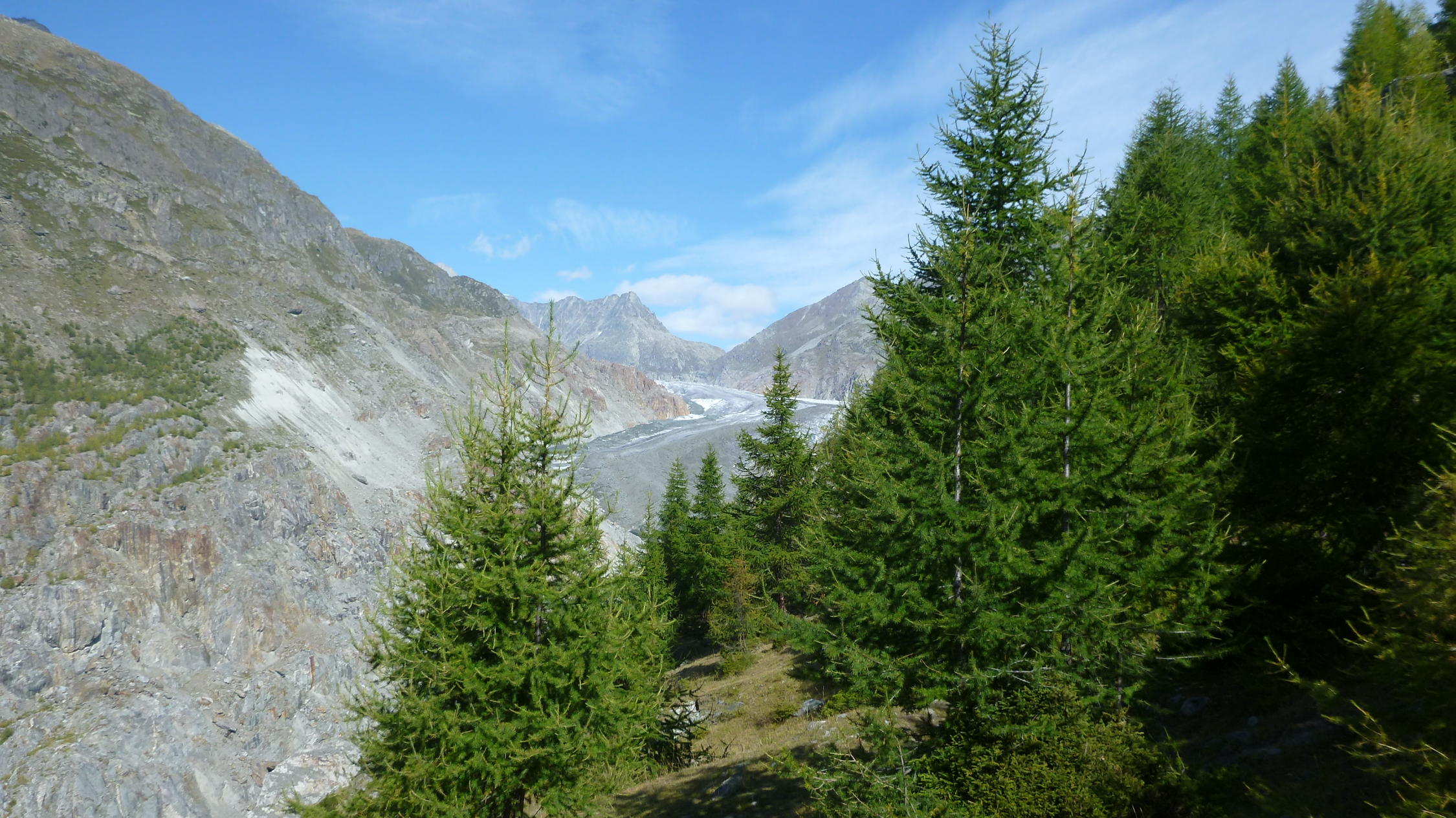 Die Sicht auf den schwindenden Aletschgletscher und die ganze Natur dort ist wunderbar. Wer die Hirschbrunst hautnah erleben will ist hier noch goldrichtig. Die ganze Wanderung wird musikalisch untermalt durch das Röhren der Tiere. Gerade Kinder sehen dann hinter jedem Baum und auf den Moränen die stattlichen 32-Ender ;-).