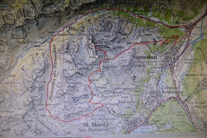 Val Bever Ab Bever zur Alp Muntatsch, Valett zum Piz Ot. Zurück zum Bike und zum Vallettapass, Chamanna Saluver, um den Piz Nair zum Suvrettapass und durchs Val Bever zum Ausgangspunkt.