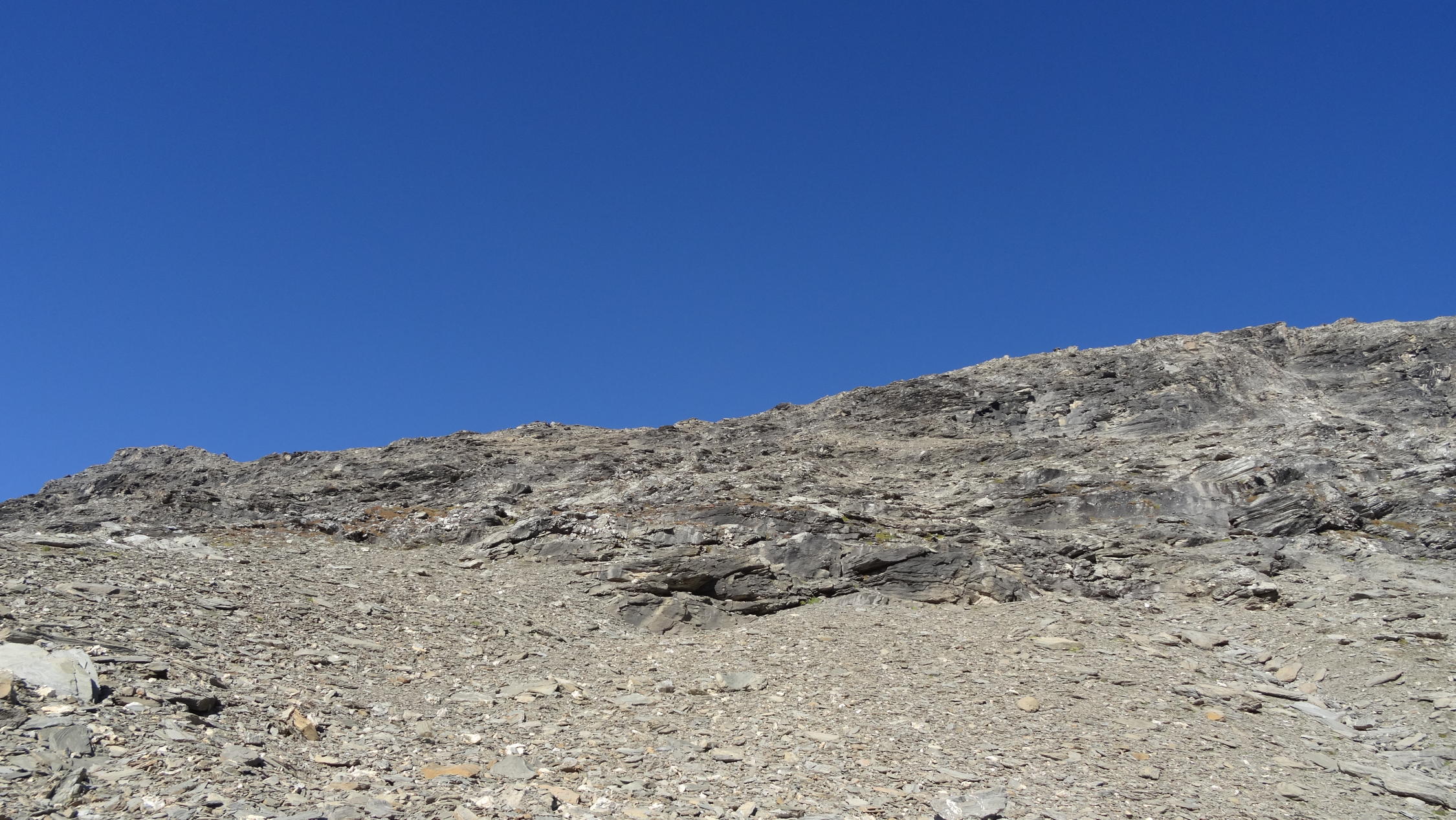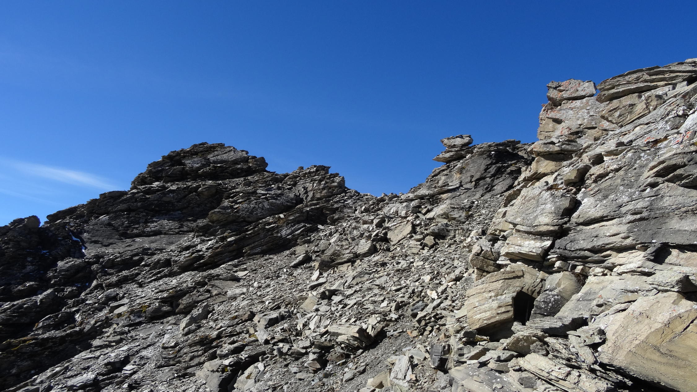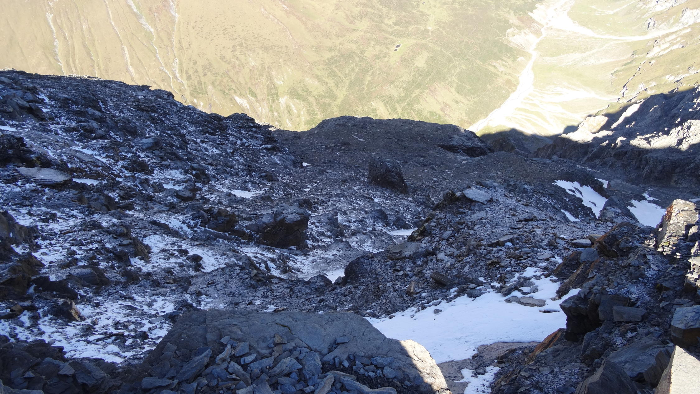 kurz nach pkt. 3176 sollte man den gratkopf auf der nordseite umgehen. auf der nordseite ist der boden jedoch hart gefroren und die steine vereist...