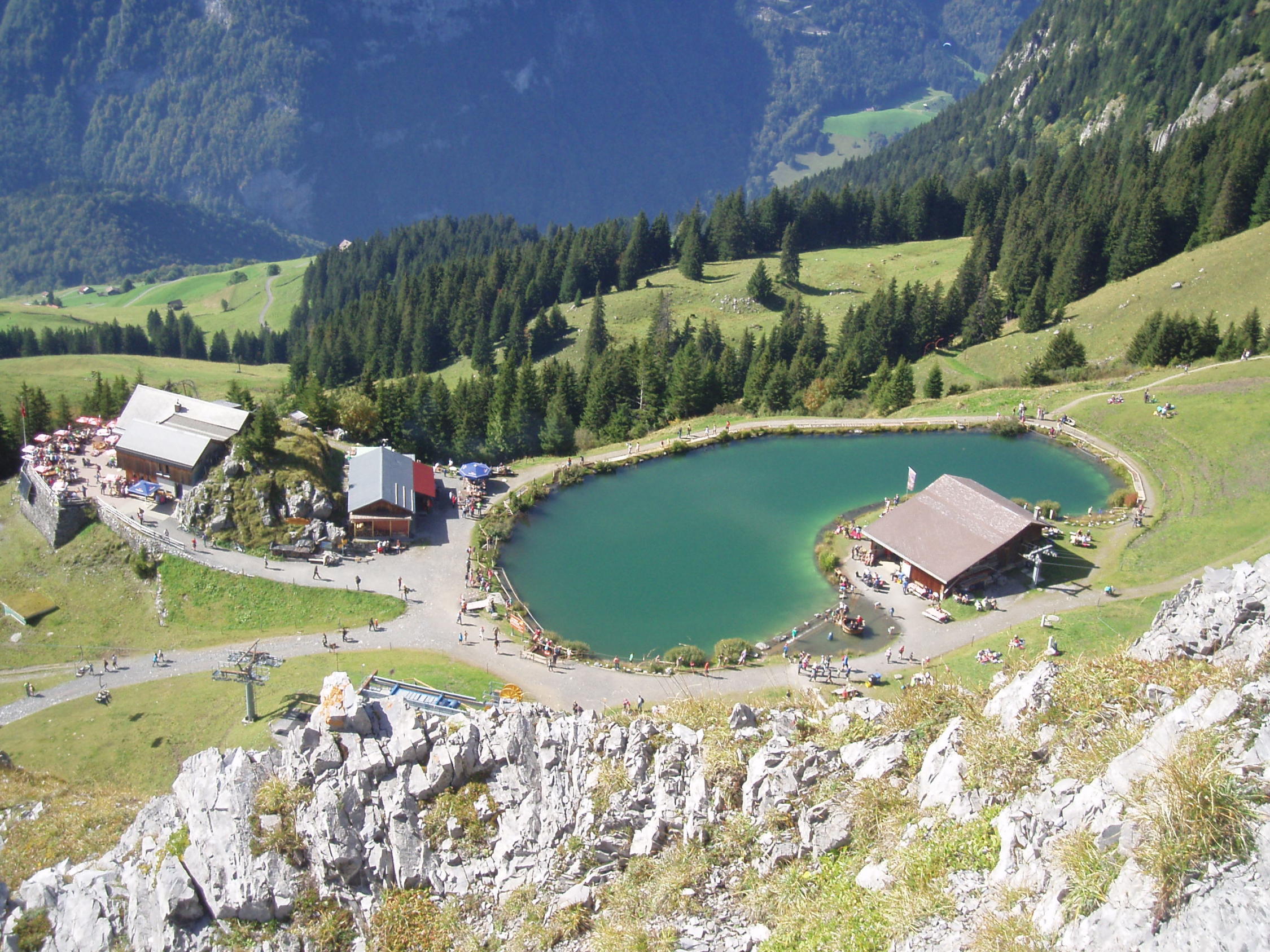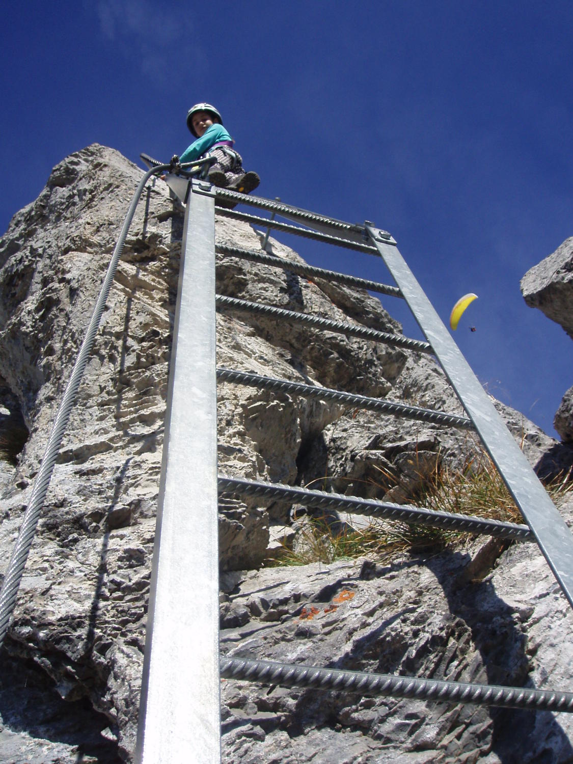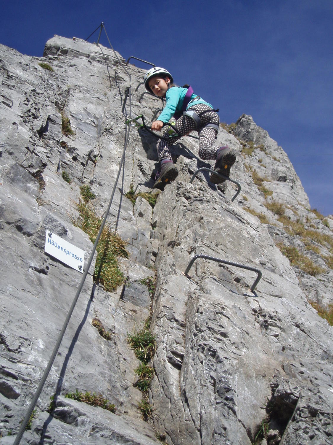 Sind von Ristis den zunächst asphaltierten Weg rechts von der Sesselbahn gegangen, der später in einen Bergweg abzweigt. Statt von der Brunnihütte direkt nach Ristis abzusteigen, empfiehlt sich der landschaftlich äusserst reizvolle Abstieg über Rigidalalp und von dort nach Ristis (etwa 20 Minuten länger). Zwischen Rigidalalp und Ristis befinden sich einige rustikale Hollywood-Schaukeln aus Holz auf denen man mit grandiosem Blick auf die Bergwelt seine Beine und Seele baumeln lassen kann. Am Härzlisee hats einige familienfreundliche Brätlistellen mit unterhaltsamem Blick auf die Kletterer des Zittergrates (Cervelat gibts zu kaufen, Holz gratis). Zum Abschluss der Tour eine "Wellness-Runde" im eiskalten Wasser des Härzlisees. Gratulation an Lena, die ihren ersten alpinen Klettersteig mit Bravour gemeistert hat!