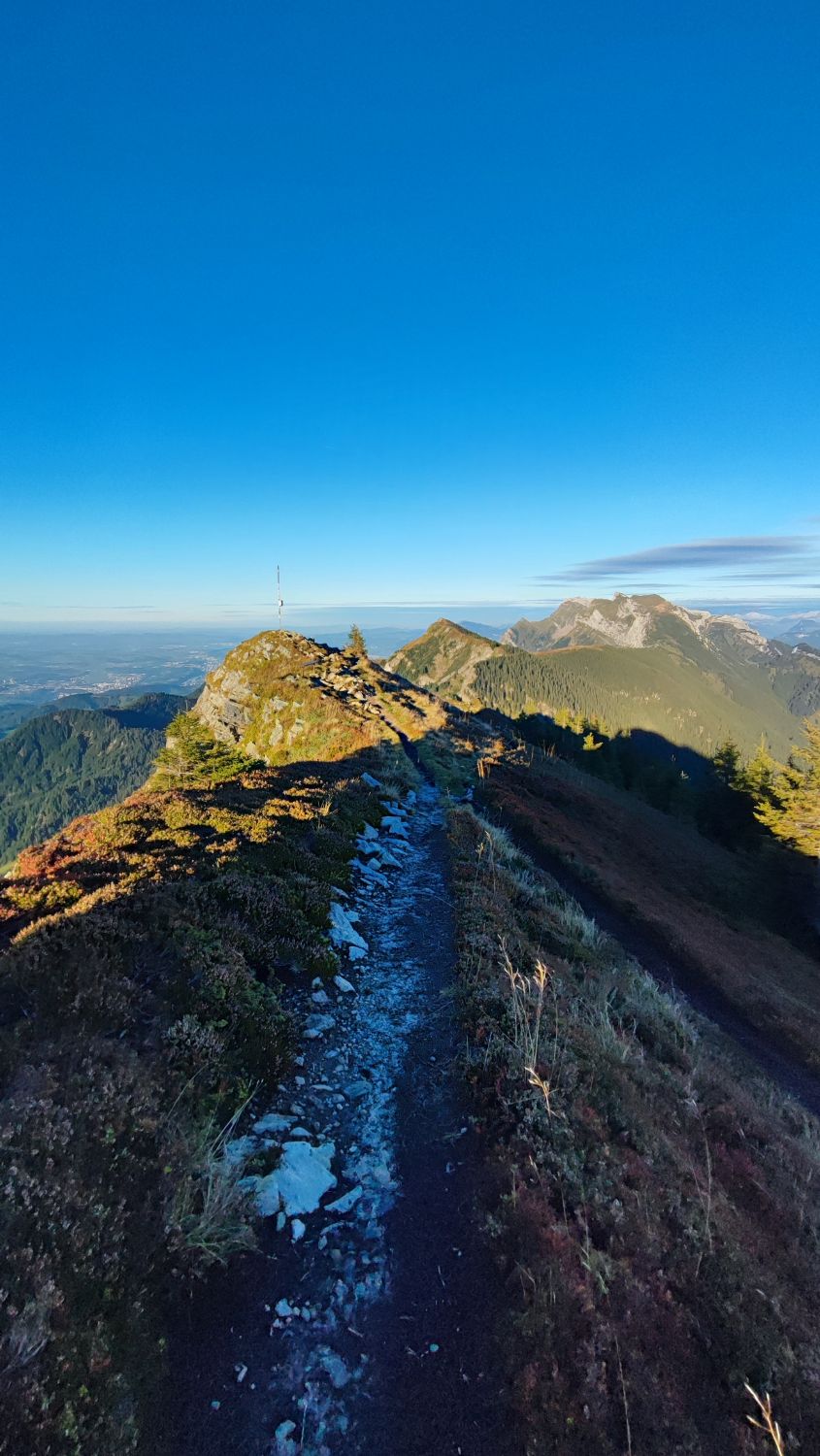 Wenige feuchte Stellen, auf dem Grat und den beiden Gipfeln starker, kalter Wind