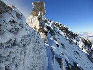 Sehr gut Verhältnisse, der obere Teil des Grates war allerdings noch stark mit Schneeanraum überzogen.