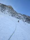 Gute Verhältnisse in der Wand, auch dank der vielen Begehungen; unten und oben Firn, im Mittelteil eingepickeltes Eis und etwas Fels.