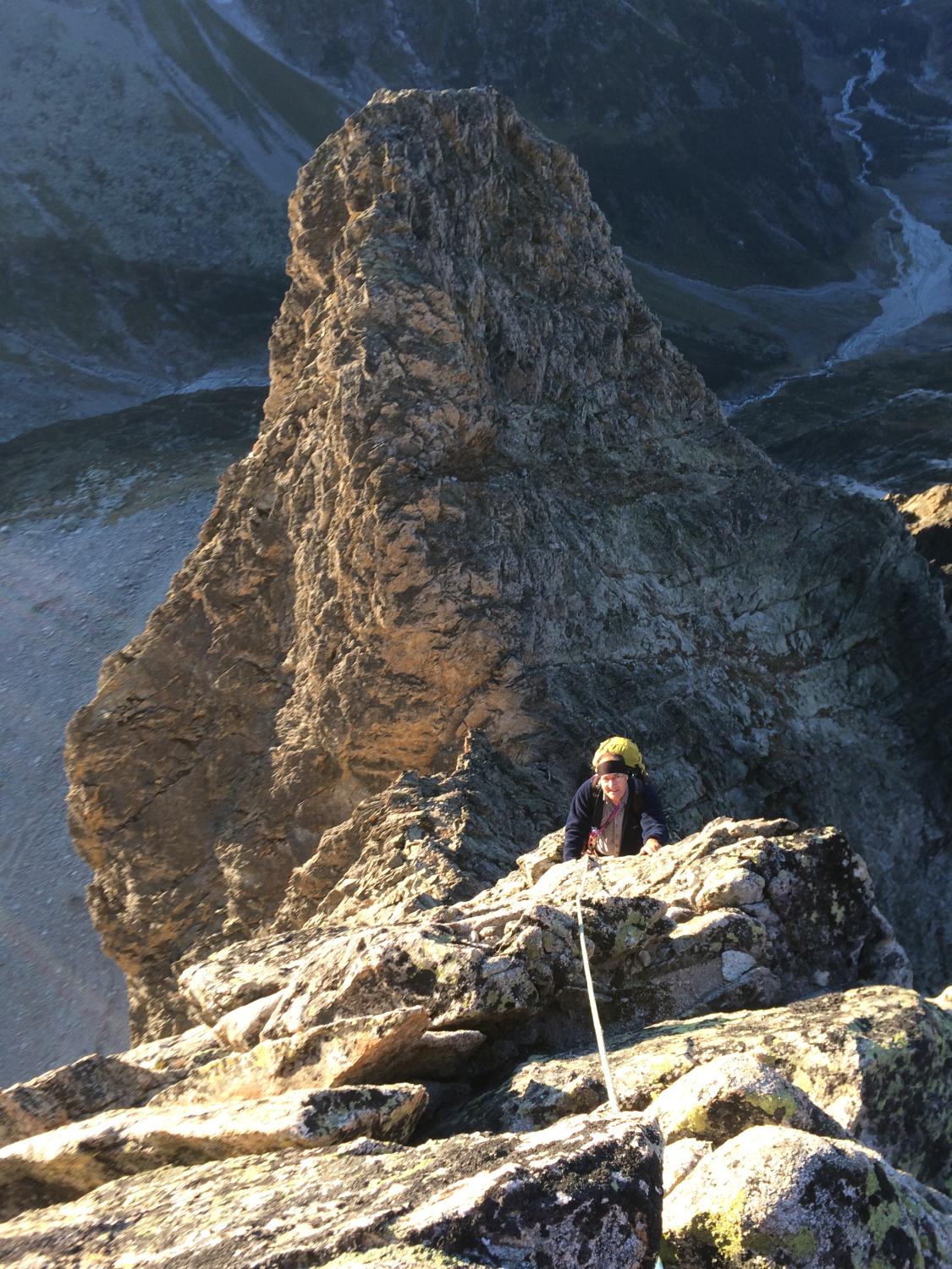 Beste herbstliche Kletterverhältnisse an den fünf Türmen über den Südgrat auf das Stockhorn im Baltschiedertal.