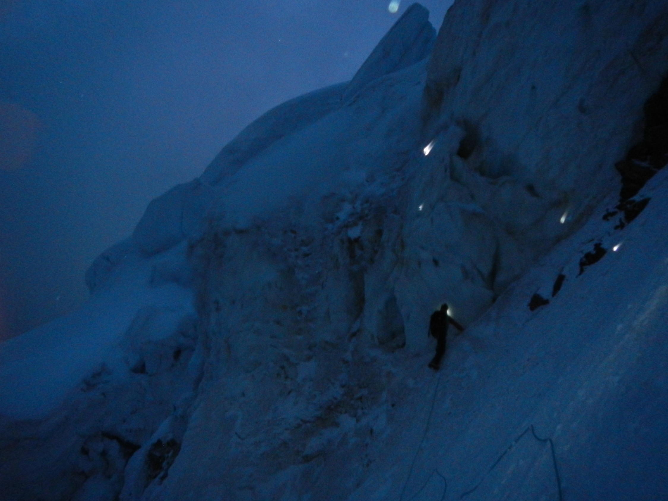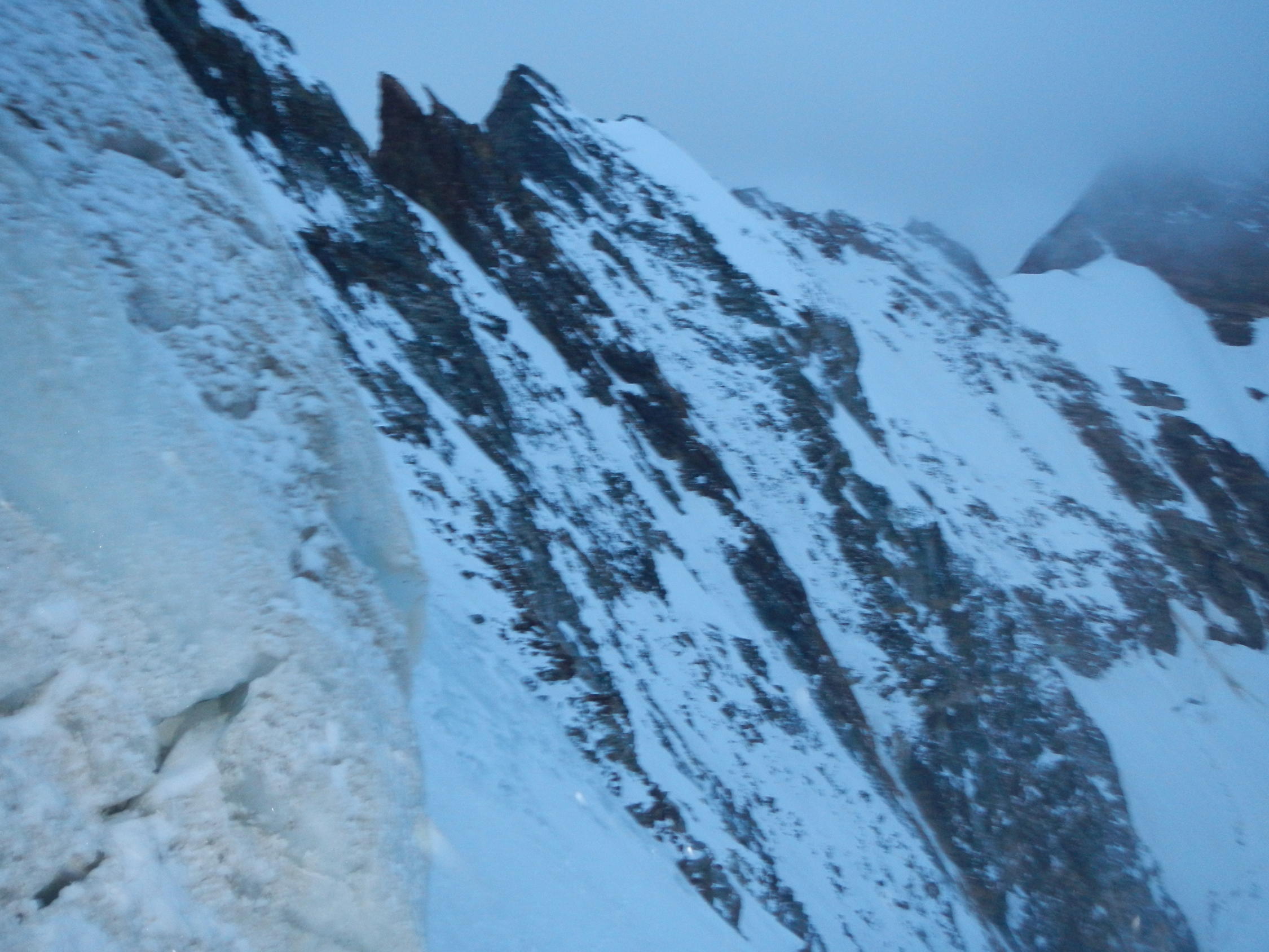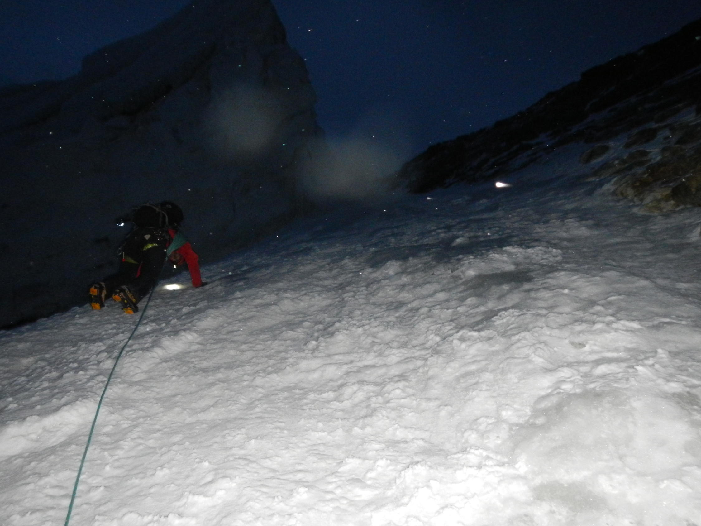 Mehrheitlich harter Schnee bis Eis in der WNW- Flanke (gut für die Wädlini).