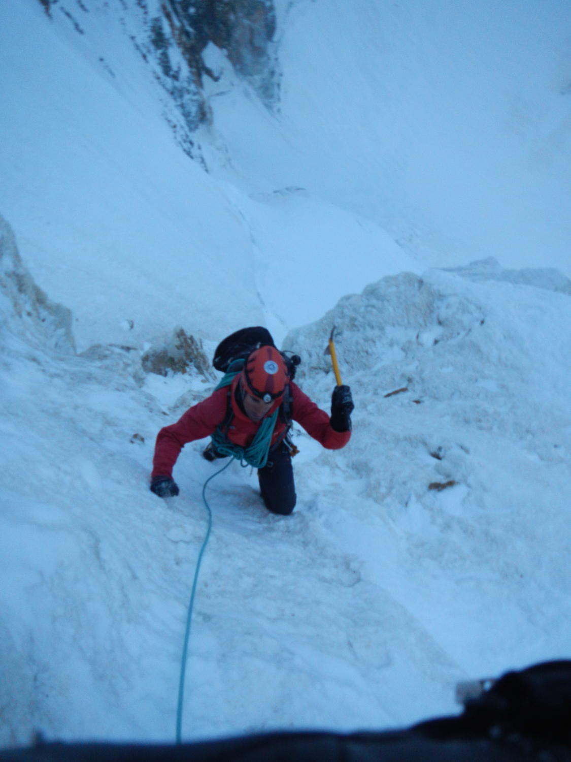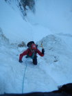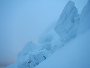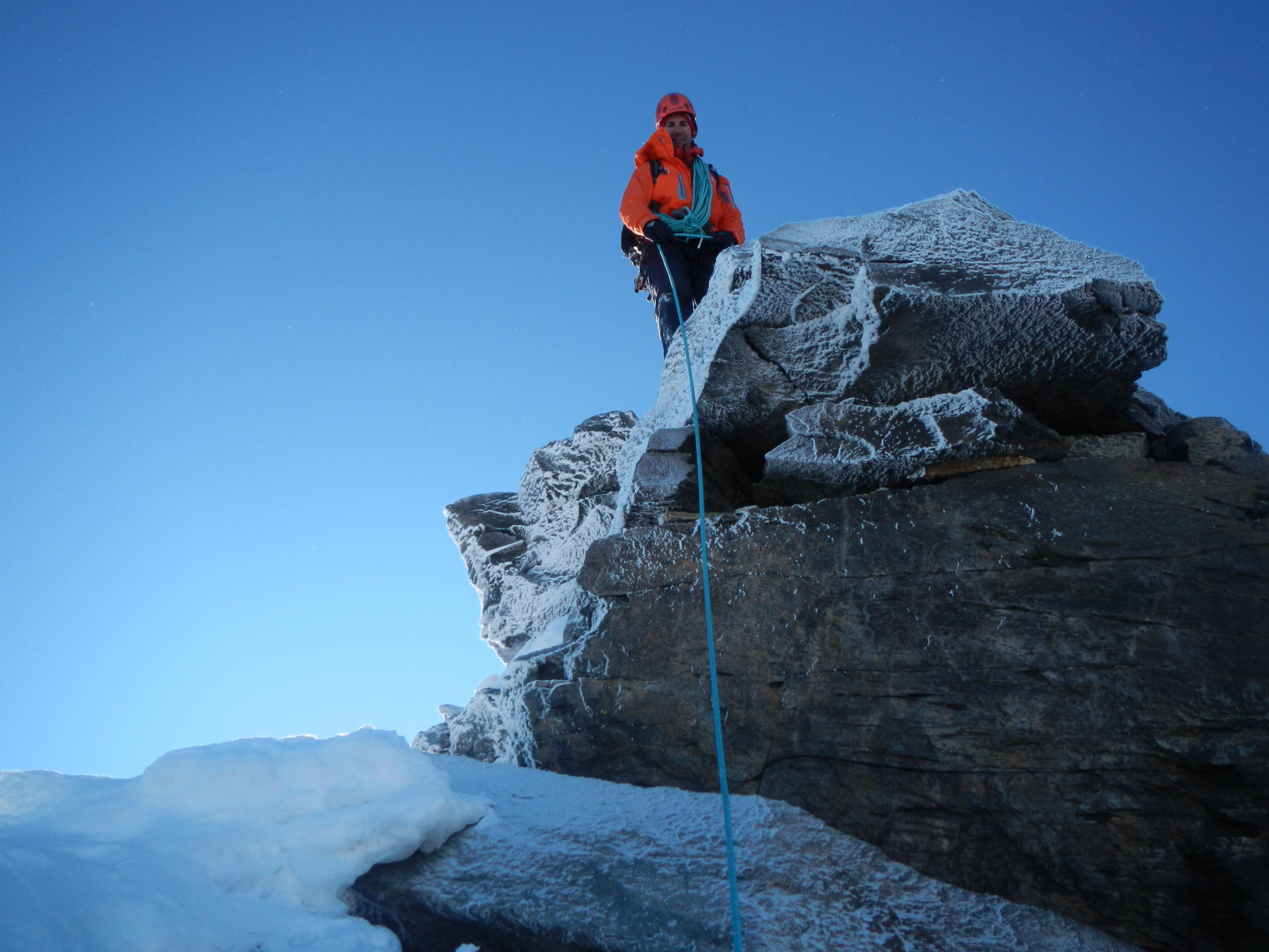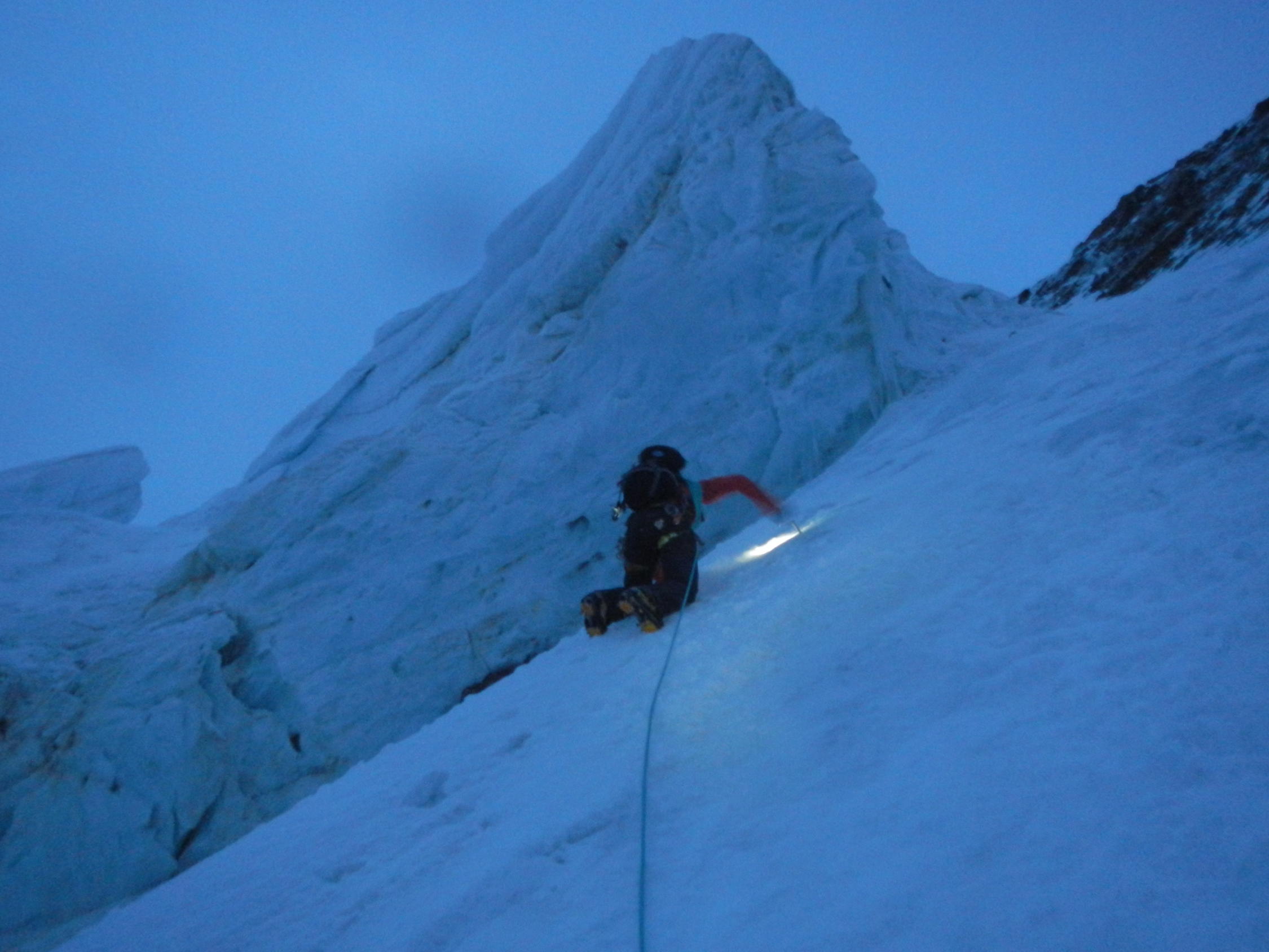 Mehrheitlich harter Schnee bis Eis in der WNW- Flanke (gut für die Wädlini).
