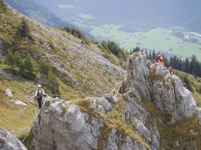 Im Aufstieg viel feuchter Boden, der sich in den Bergschuhen festsetzt und die Eisenstifte auf den ersten Metern sehr schmierig werden lässt. Ansonsten Klettersteig in tadellosem Zustand.