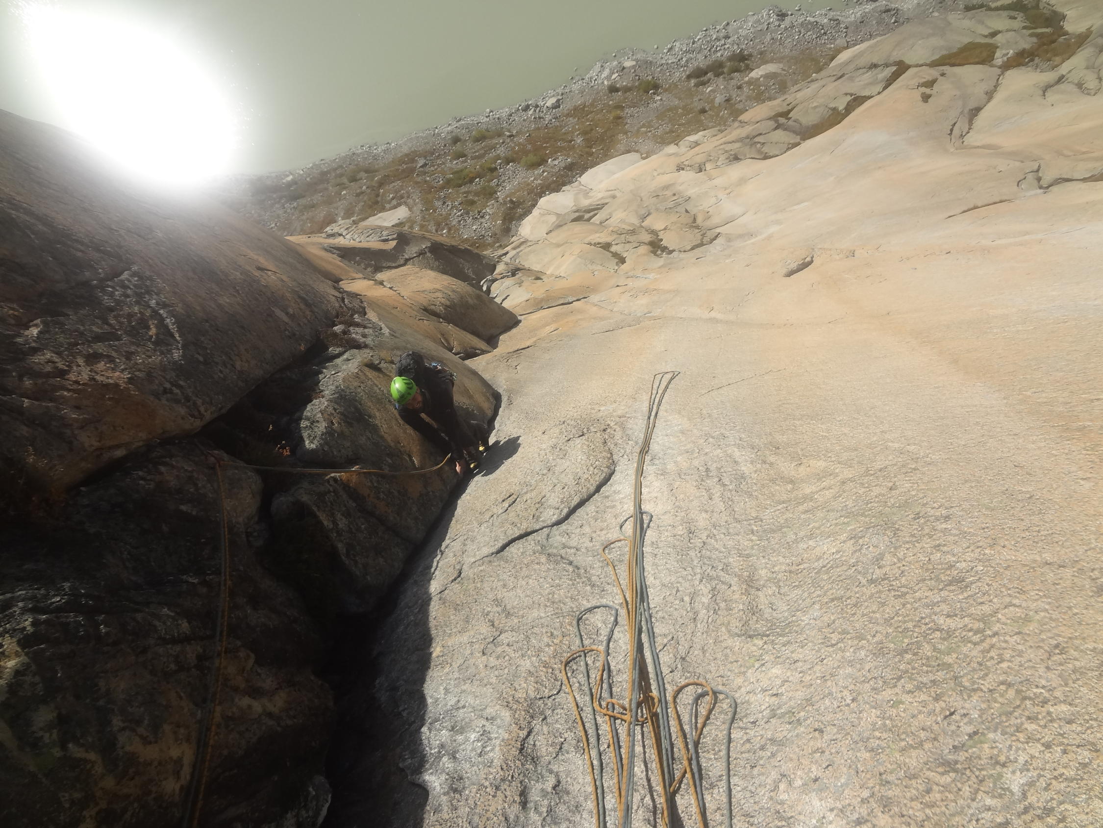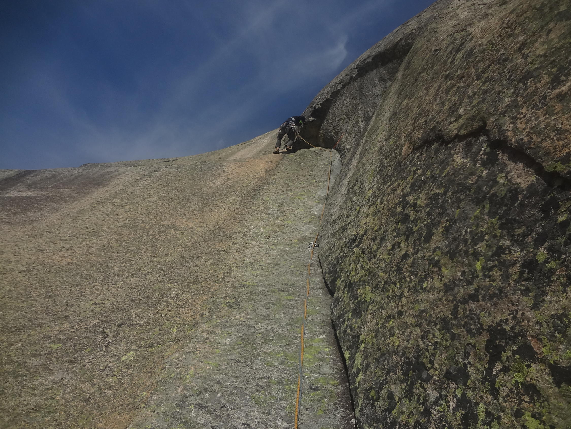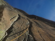 Da hat sich für uns ein Traum erfüllt. Es ist in diesem Schwierigkeitsgrad wohl DIE Granittour und gehört mit Recht zu den grossen Klassikern. Wir hoffen fest, dass diese Routen in diesem Stil erhalten bleiben. Das Absichern mit Friends und Keilen macht die Tour zum grossen Erlebnis und es sind nur wenige gut platzierte BH an kritischen und nicht absicherbaren Stellen vorhanden.