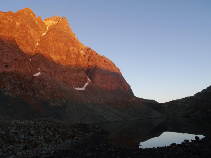 Ausrüstung generell: ich hatte sicherheitshalber Steigeisen dabei, brauchte diese aber nicht. Auf jedem Fall Helm. Wer einen II+ sicher klettern kann, braucht kein Seil. Die erste Wasserstelle auf der Tour ist erst kurz vor dem Biwak. Der Winterraum der Sella Hütte ist sehr komfortabel. Ich rate folgendes mitzubringen: Kerzen, Wassersack (Wasser hat es nur am See), Kocher (es hat zwar einen, aber sehr geringe Kochleistung). Am Monte Viso hat es im oberen Drittel eine etwas unklare Markierungssituation. Es geht in zwei unterschiedliche Richtungen weiter. Die rechte Markierung ist defintiv zu vernachlässigen und endet auch hinter einem absteigenden Band.