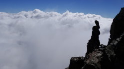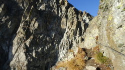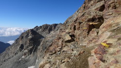 Komischer Vorfall: Ich hatte meine zwei Tourenstöcke am Einstieg zurückgelassen. Unterwegs nahm ich ganz kurz Stimmen war, sah aber niemand. Zurückkommend, fehlten meine Stöcke. Im Biwak fand ich dann einen, aber der andere war unauffindbar. Am Parkplatz holte ich dann noch die "Übeltäter" ein und fragte wo der andere Stock wäre. Die zwei Franzosen meinten, der wäre doch auch im Biwak, ich hätte nur richtig schauen müssen. Ehrlich gesagt war ich so sauer, habe mir dann aber gdacht, dass ich mir mein Gipfelerlebnis dadurch nicht kaputt machen lasse. Aber die Vermutung, dass sie einen Stock in ihren Bus gepackt hatten, lag bei mir nahe, zumal dieser auch nagelneu war.