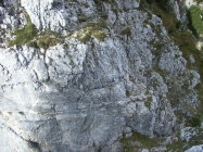 Abseilstelle Doppelriss beim Abklettern meiner Meinung nach den linken Riss (aus Gesicht zur Wand aus gesehen) schien mir einfacher. Guter Henkel und Tritte im und neben Riss.