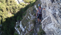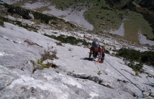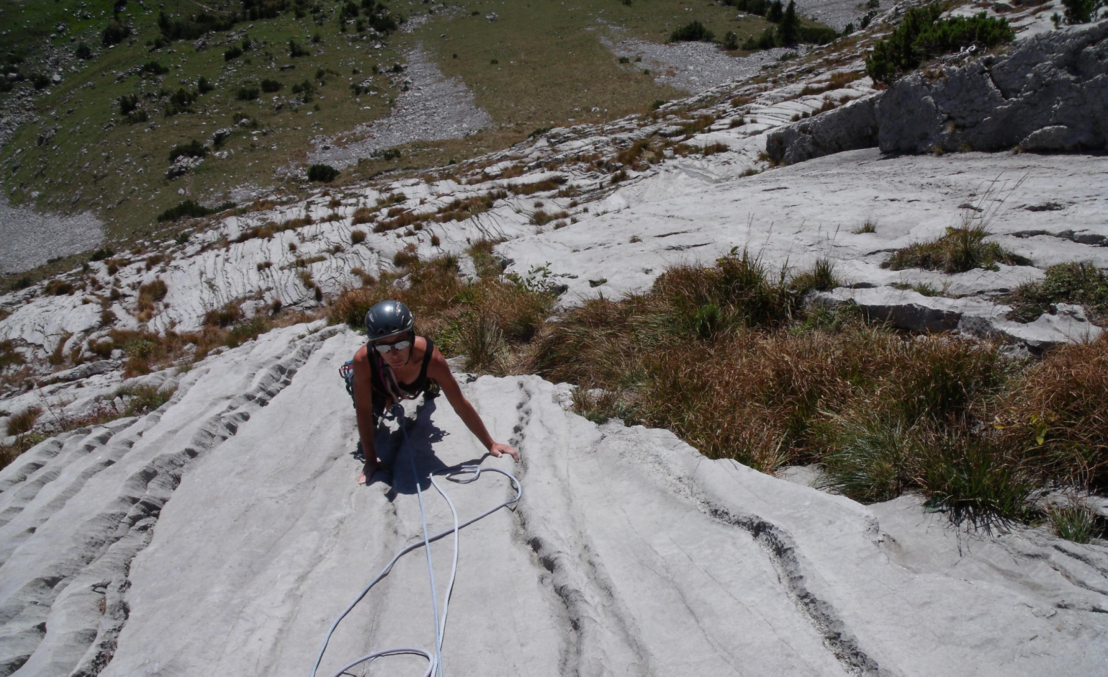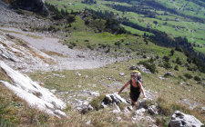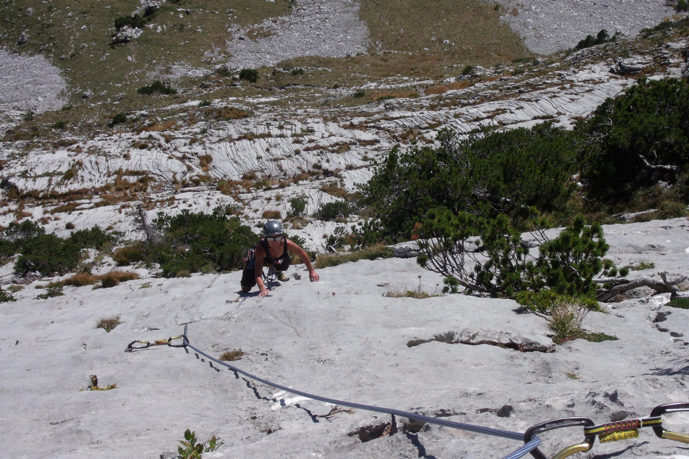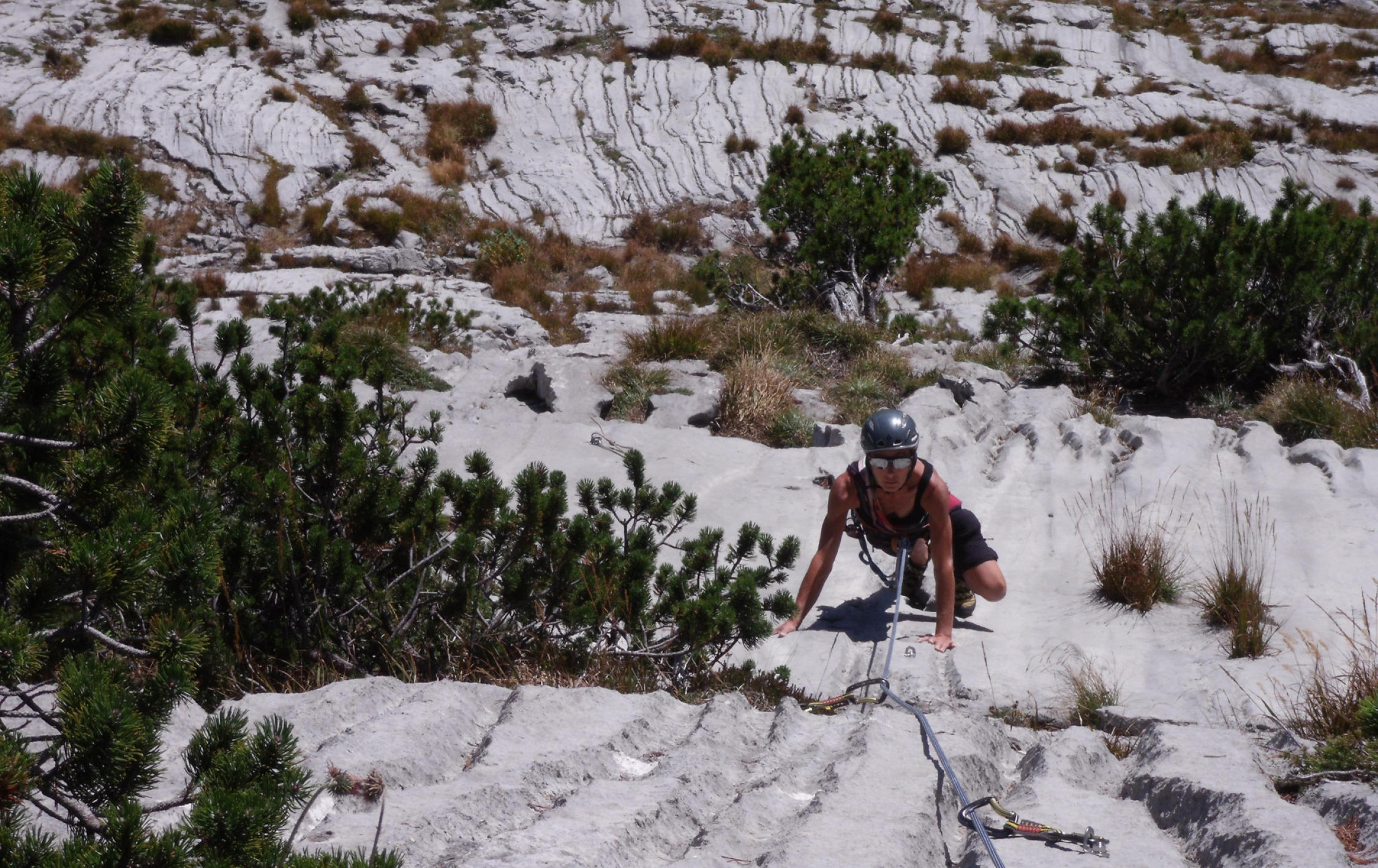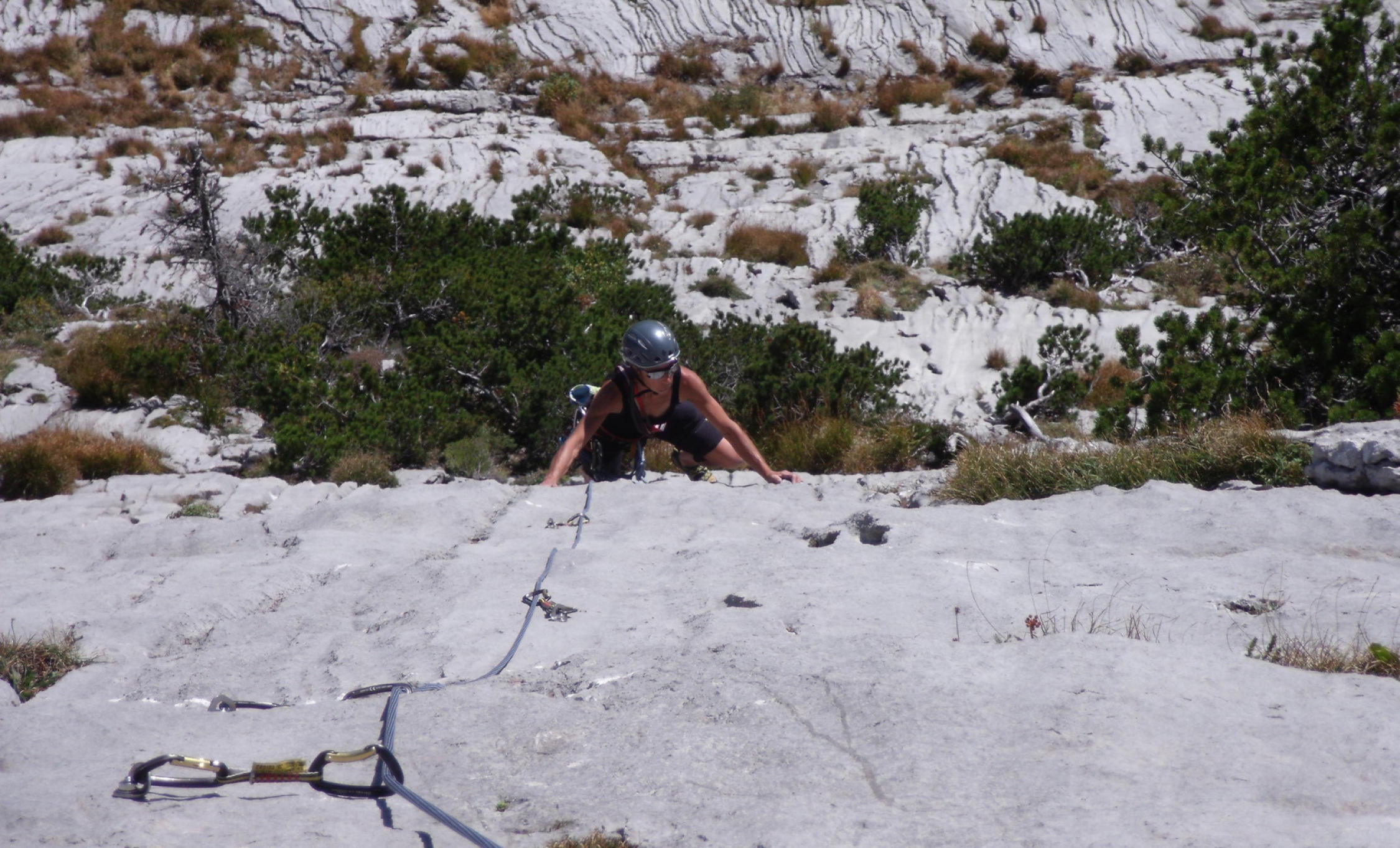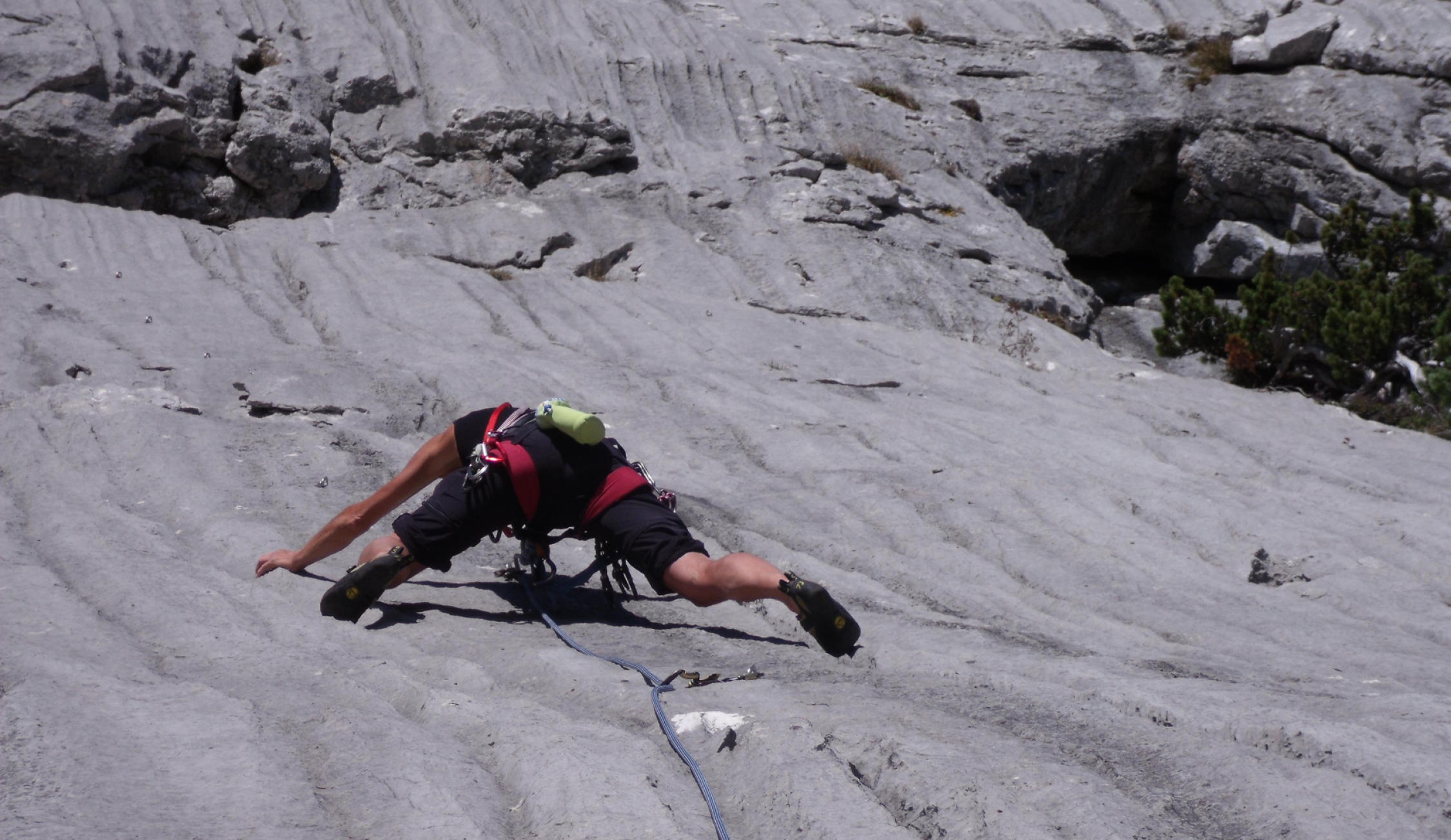 Wir sind durch die Südostwandplatte geklettert. Die Route führt über fünf Seillängen im Schwierigkeitsgrad 5a durch wunderschönen Schrattenkalk. Die Route ist sehr gut abgesichert und alle Standplätze weisen mindestens zwei Bohrhaken auf.