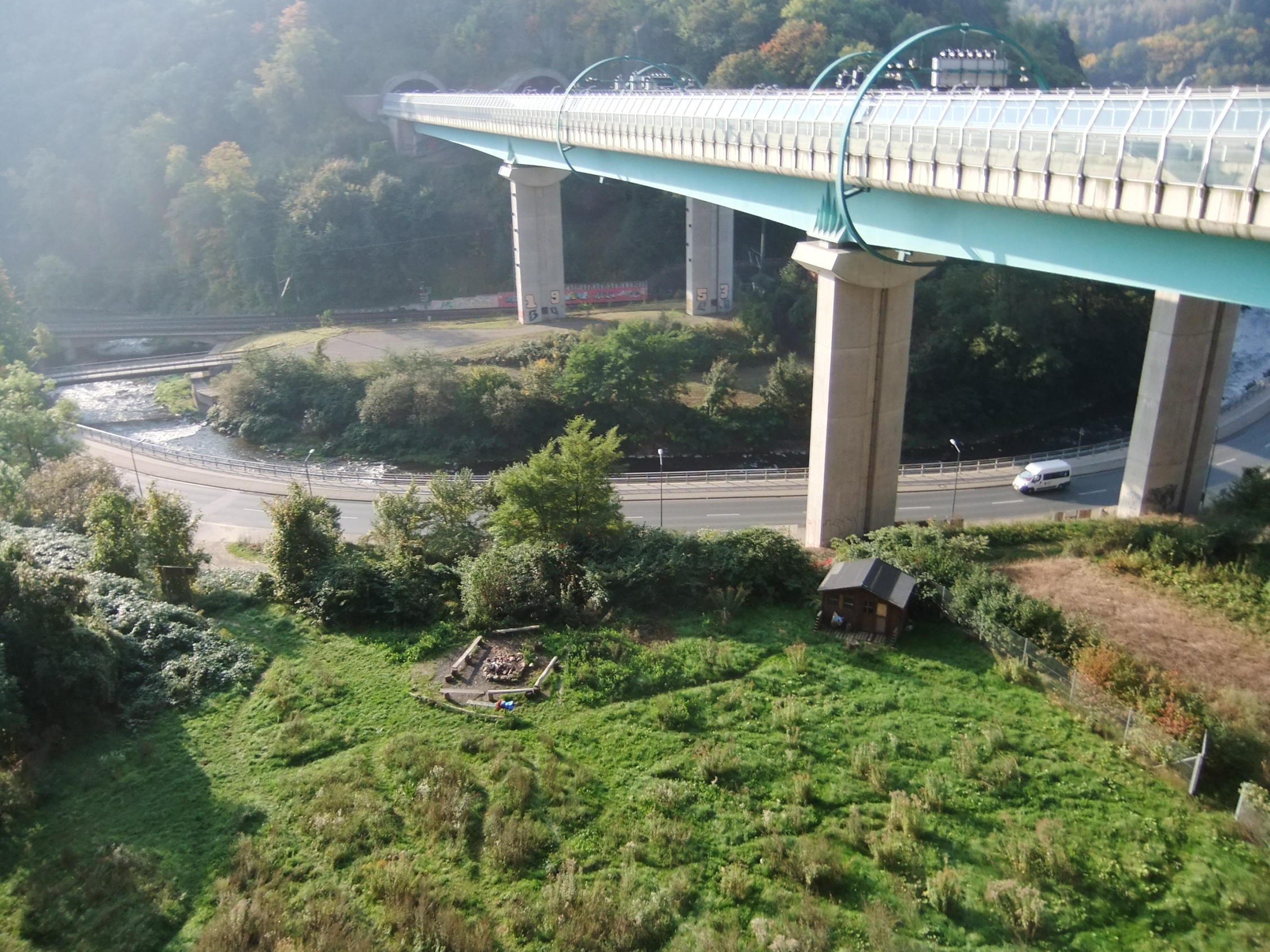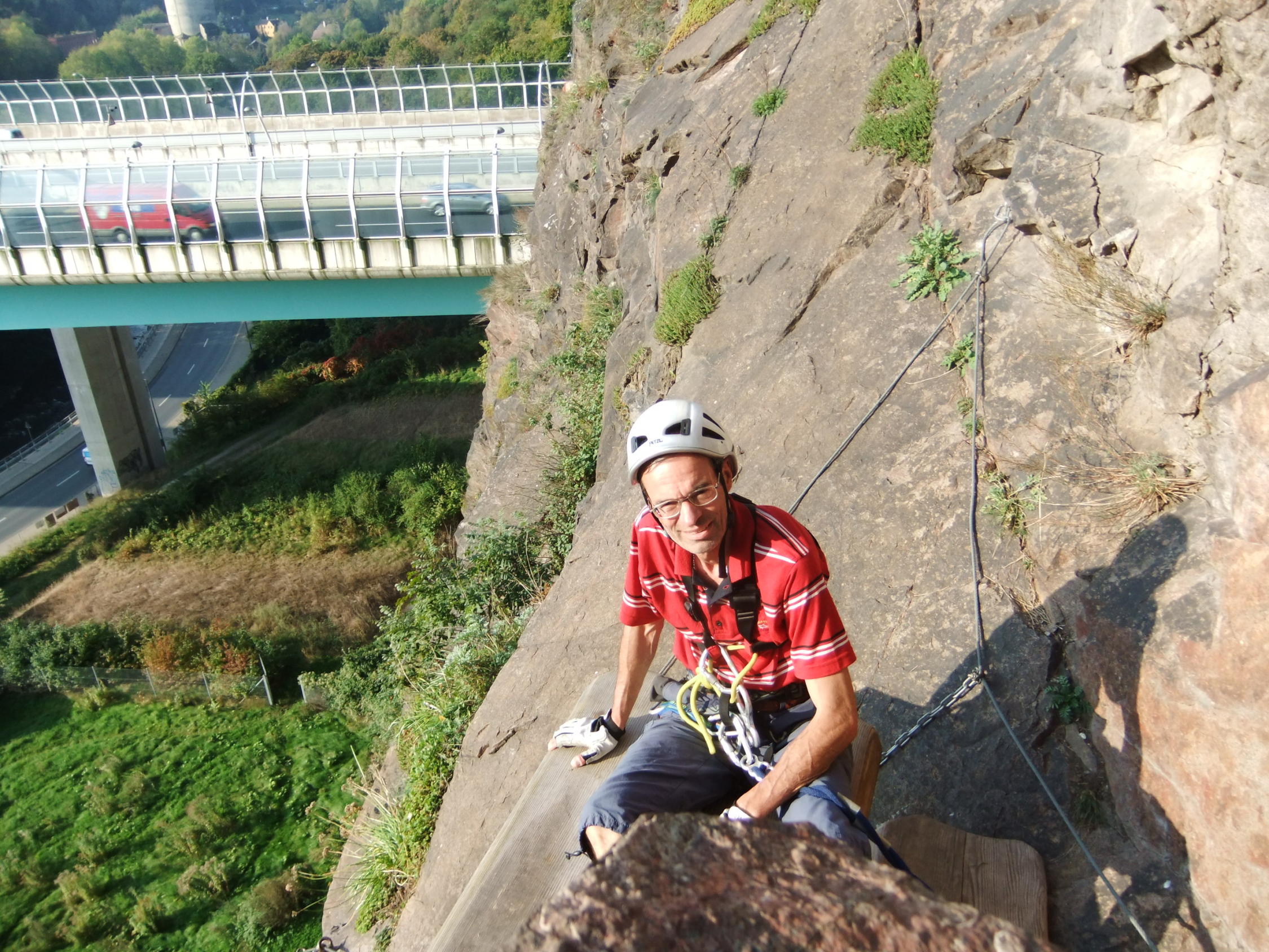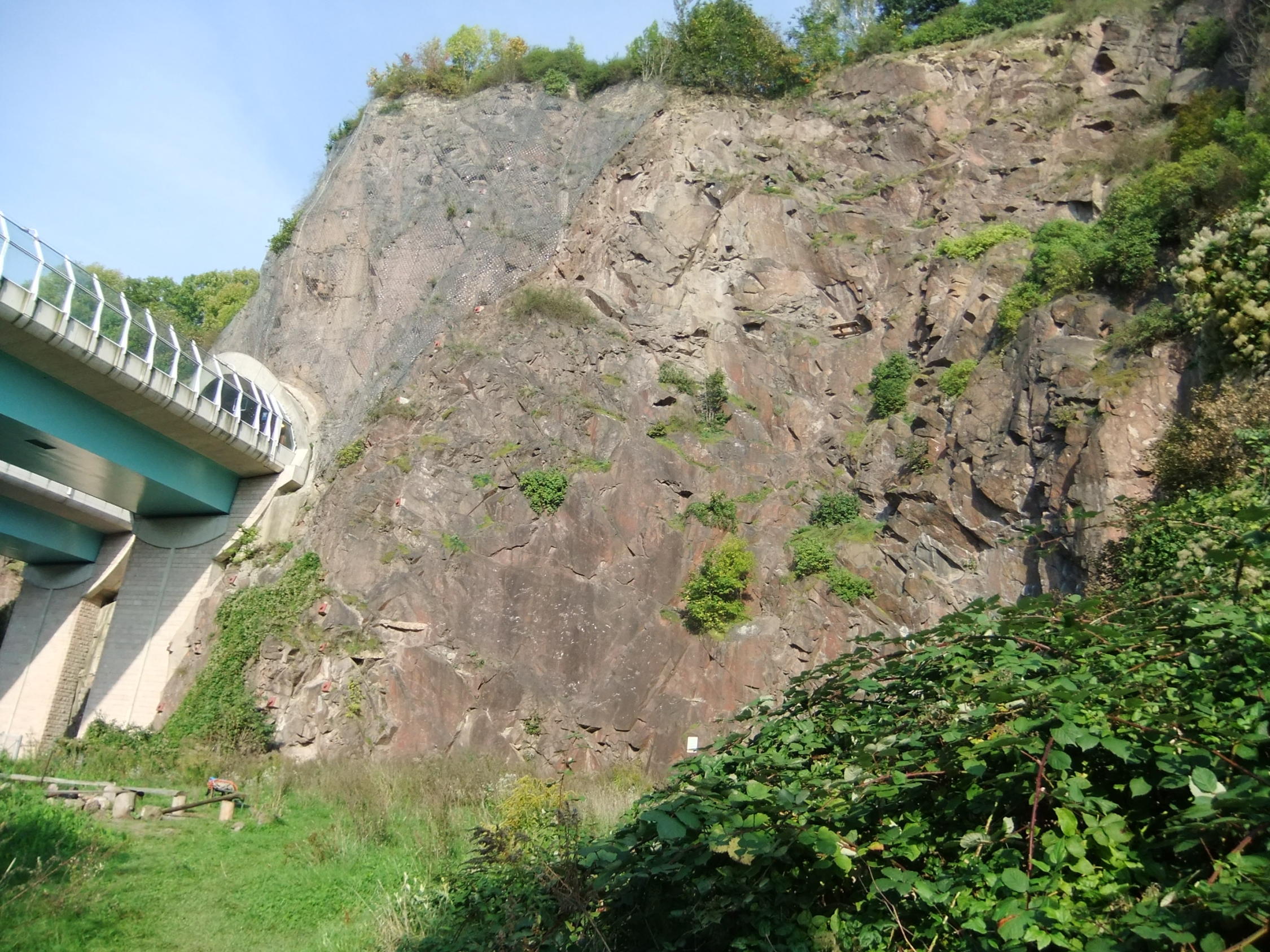 Kleines, praktisches Klettercamp unterhalb der A17, schwierig zu finden im "Großstadt-Dschungel", aber mit 2 knackigen Sportsteigen. Kletterambiente mit den Autobahn-, Bundesstraßen- und Schnellbahngeräuschen im ehemaligen Steinbruch.