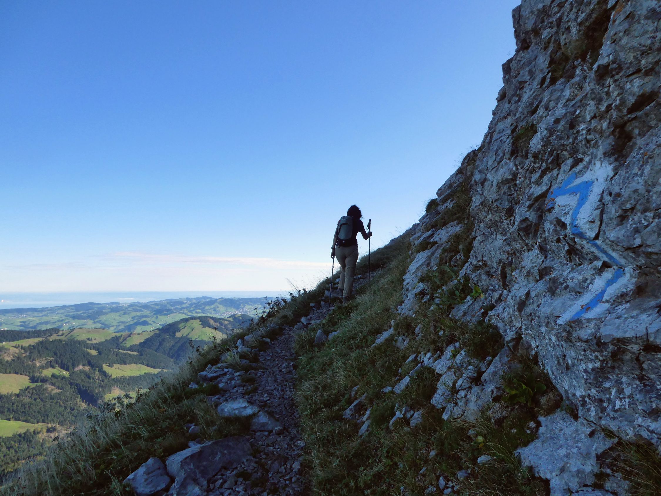 Auf der Nasenlöcherroute überholte uns eine junge Frau, ansonsten war es bis zum Öhrli noch fast menschenleer. Der Säntisweg vom Schäfler her war deutlich mehr frequentiert und auf dem Gipfel war ebenfalls viel los (Kein Wunder bei diesem Wetter!)