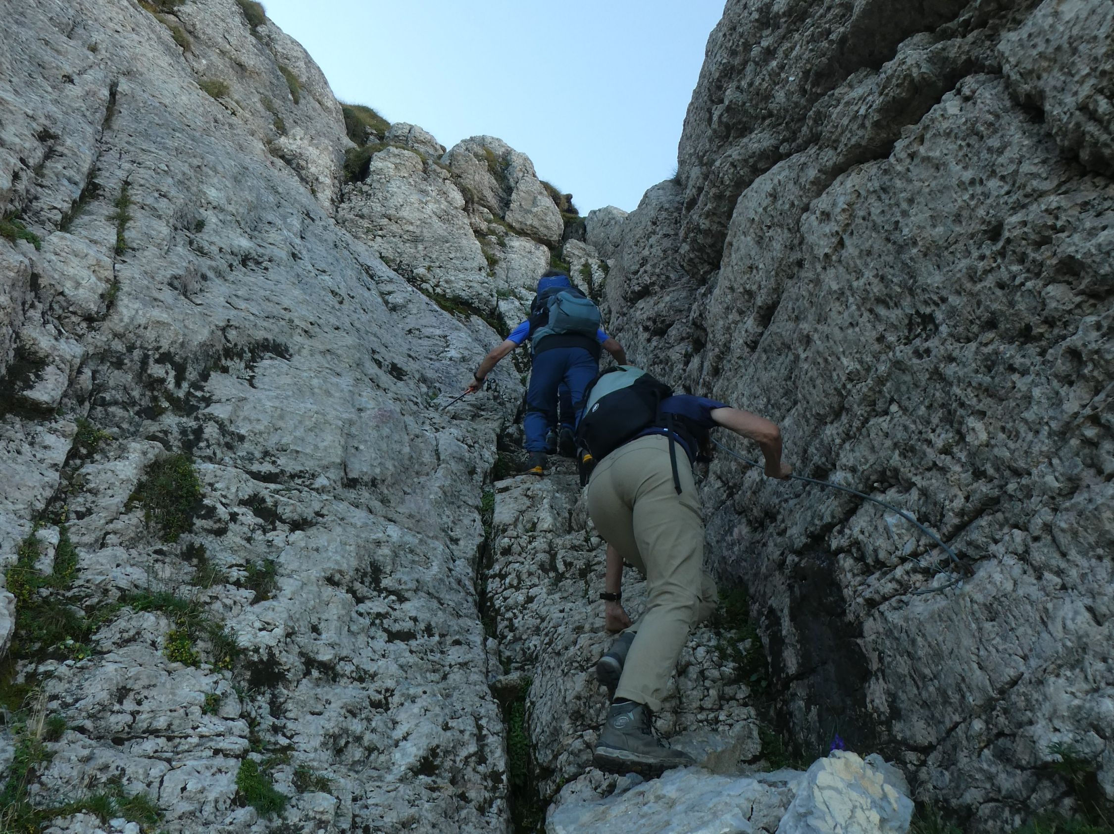 Die nordseitige Nasenlöcherroute liegt lange im Schatten. Trotzdem war die Route heute sehr gut begehbar und nur wenig feucht.