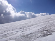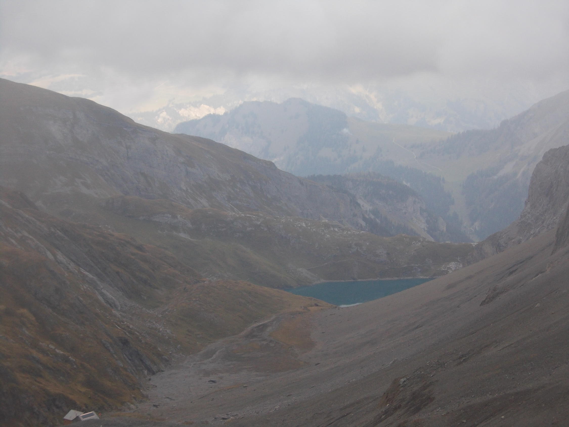 Die gut 50 Viertausender die vom Wildhorn aus zu sehen sind, versteckten sich diesmal. Einzig die Dent d`Herens zeigte sich zwischen den Wolkentürmen.