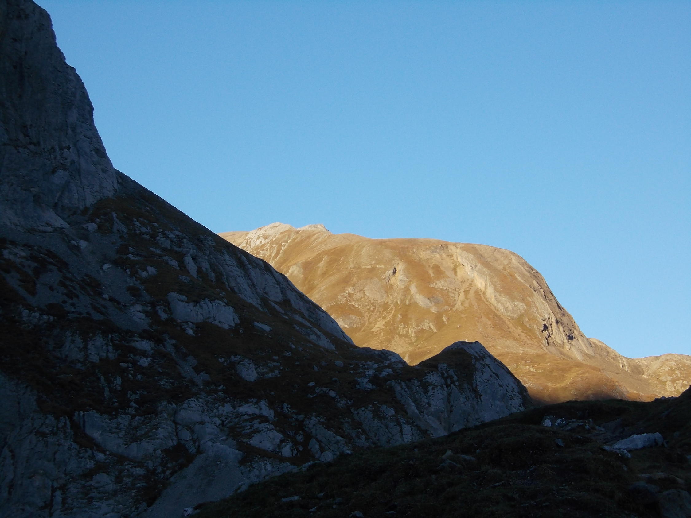 Von der Seeschnide, dem Grat über dem Iffigsee immer wieder Steinschlag. Doch dieser tangiert die Route nicht.